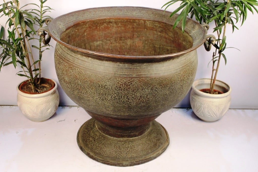Copper planter. It is hand made by skilled Indian craftsmen.