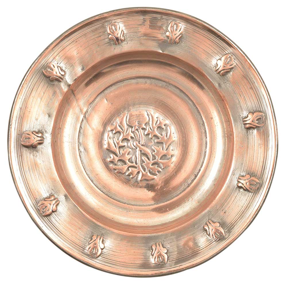 Copper Plate Or Wall Hanging Floral And Repousse Heartshaped Pattern Work