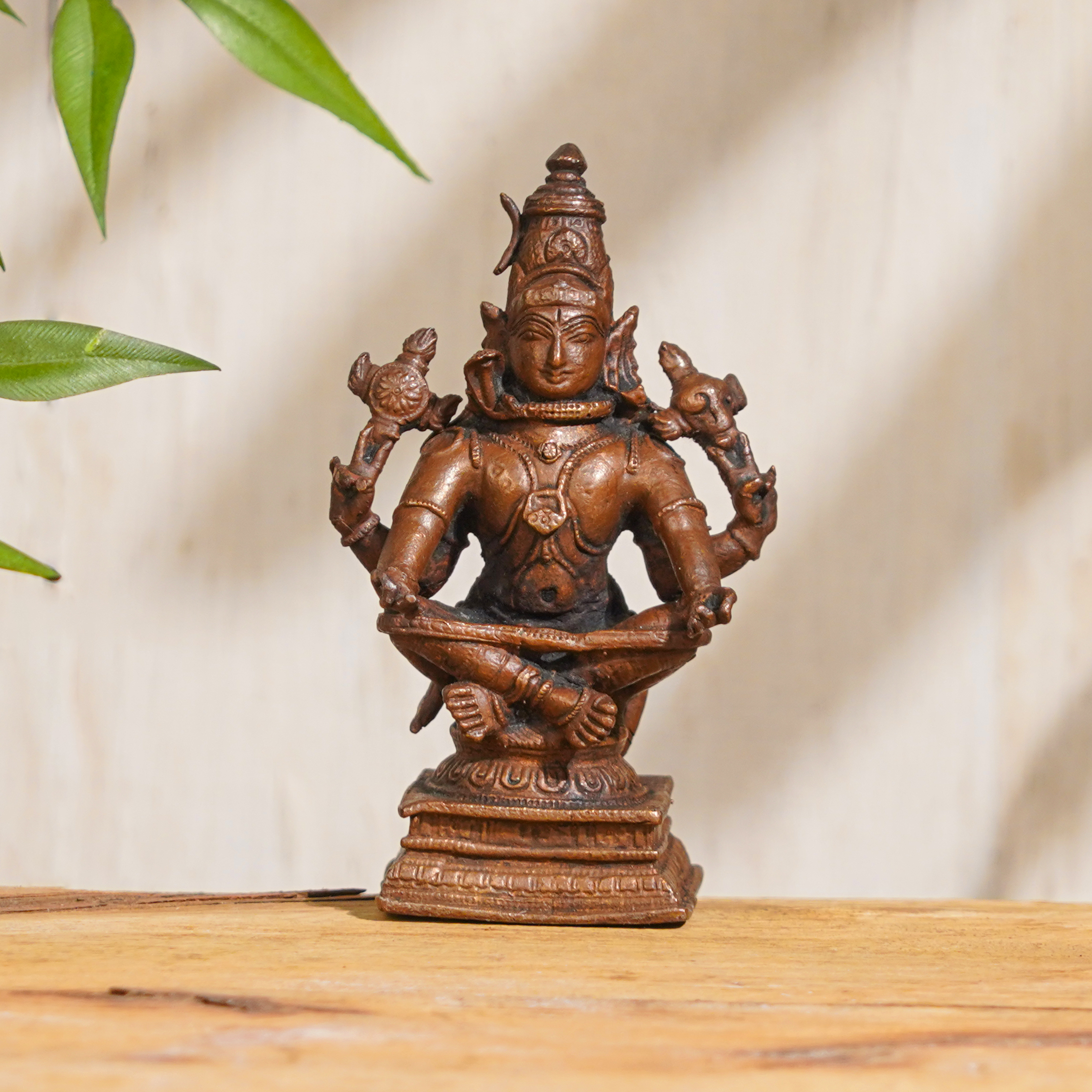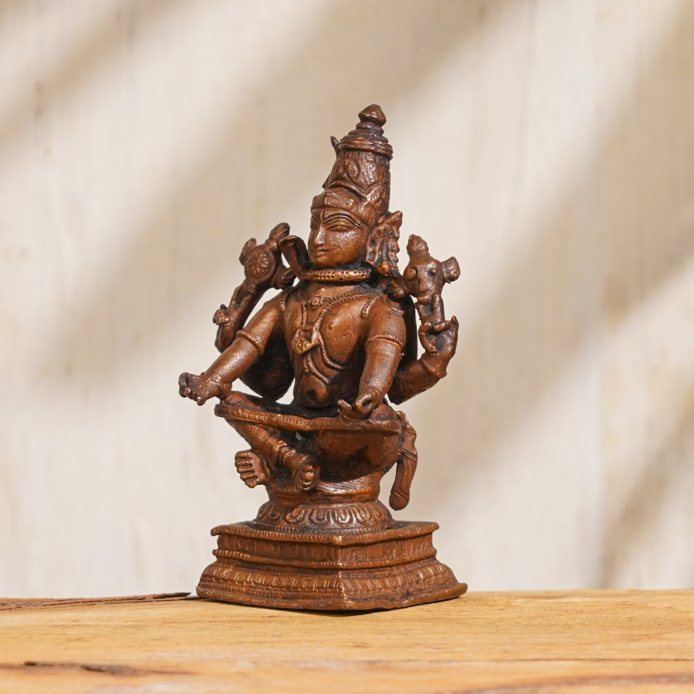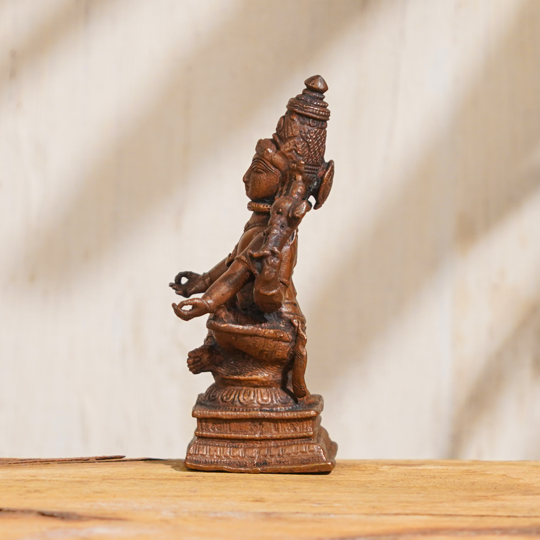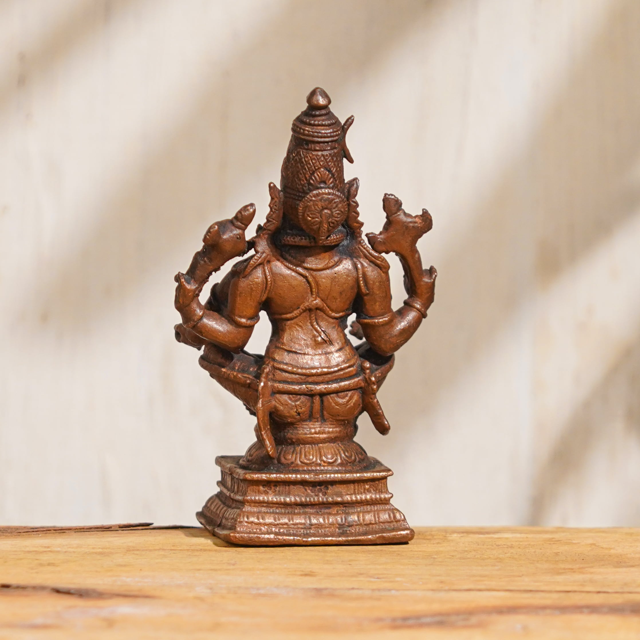 Buy this Lord Shiva copper statue online and invite the divine presence of Lord Shiva into your life. This exquisite copper statue of Lord Shiva in a sitting position is a masterpiece handcrafted by highly skilled and experienced Indian artisans. Made of high-quality copper, which is considered an auspicious metal in Hindu culture, this Lord Shiva idol is a divine representation of the powerful and benevolent Lord Shiva. Lord Shiva, the supreme deity in Hinduism, is revered and worshipped in most of the Indian temples as the embodiment of destruction and creation, and as the source of divine energy and wisdom. This intricately detailed copper statue of Lord Shiva can be a focal point of reverence and devotion in your home, office, or prayer room, adding a touch of spirituality and serenity to your space. In addition to its spiritual significance, this Lord Shiva Murti also makes for a unique and meaningful gift for your friends, family, or relatives on special occasions. Its exquisite craftsmanship, symbolic value, and auspiciousness make it a cherished and timeless gift that can bring blessings of prosperity, protection, and enlightenment.