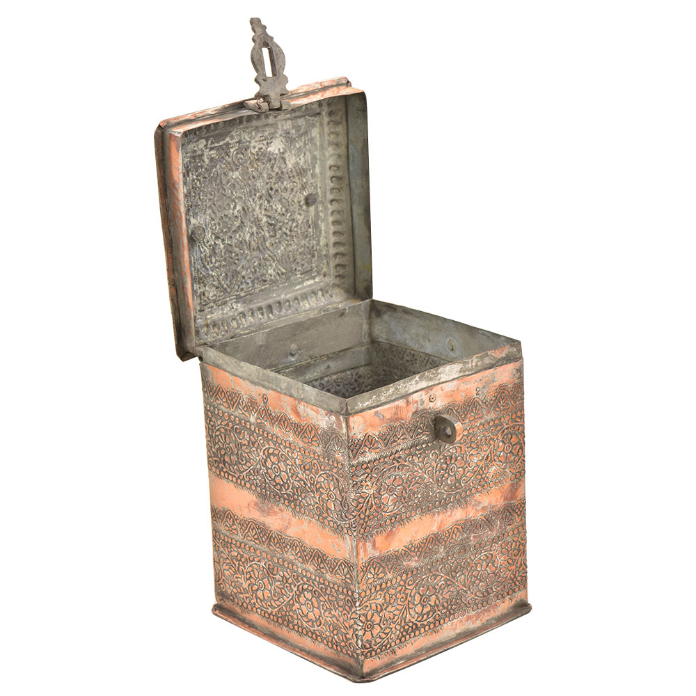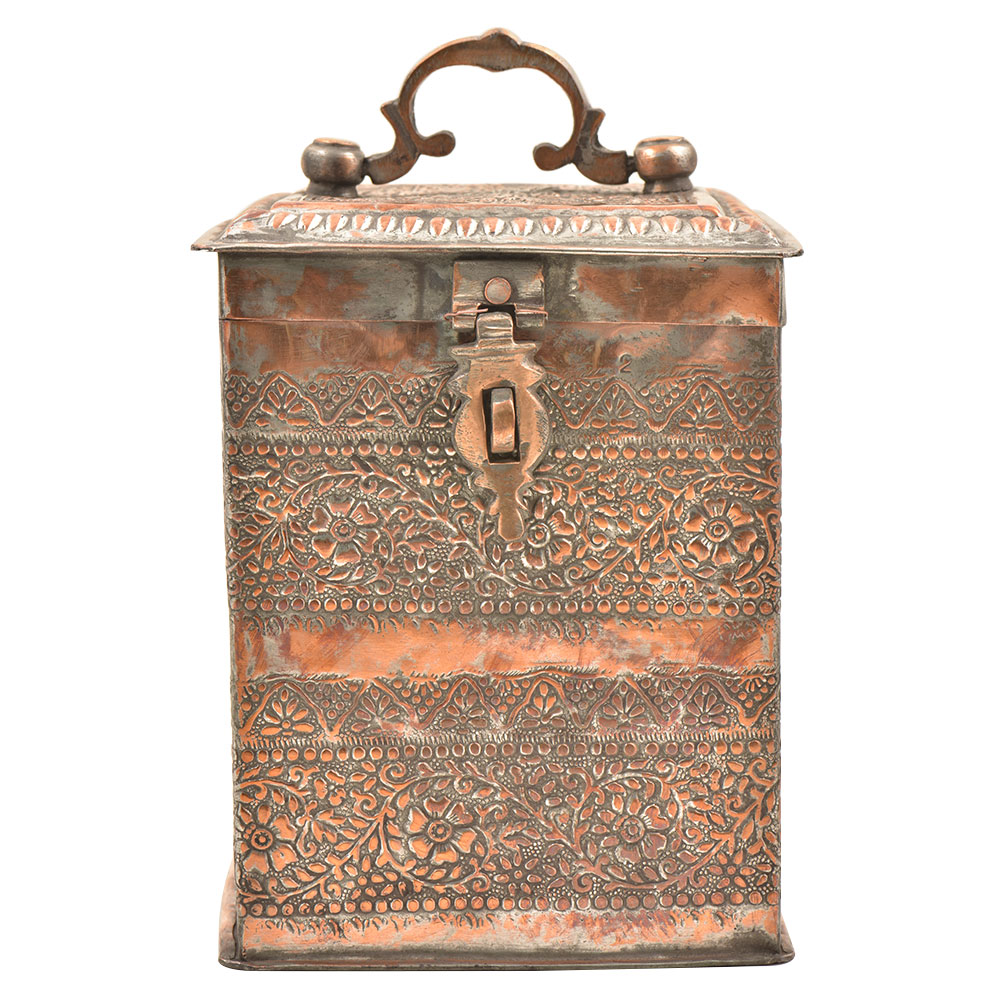 Copper Storage Box With Floral Repousse With Working Latch And Handle