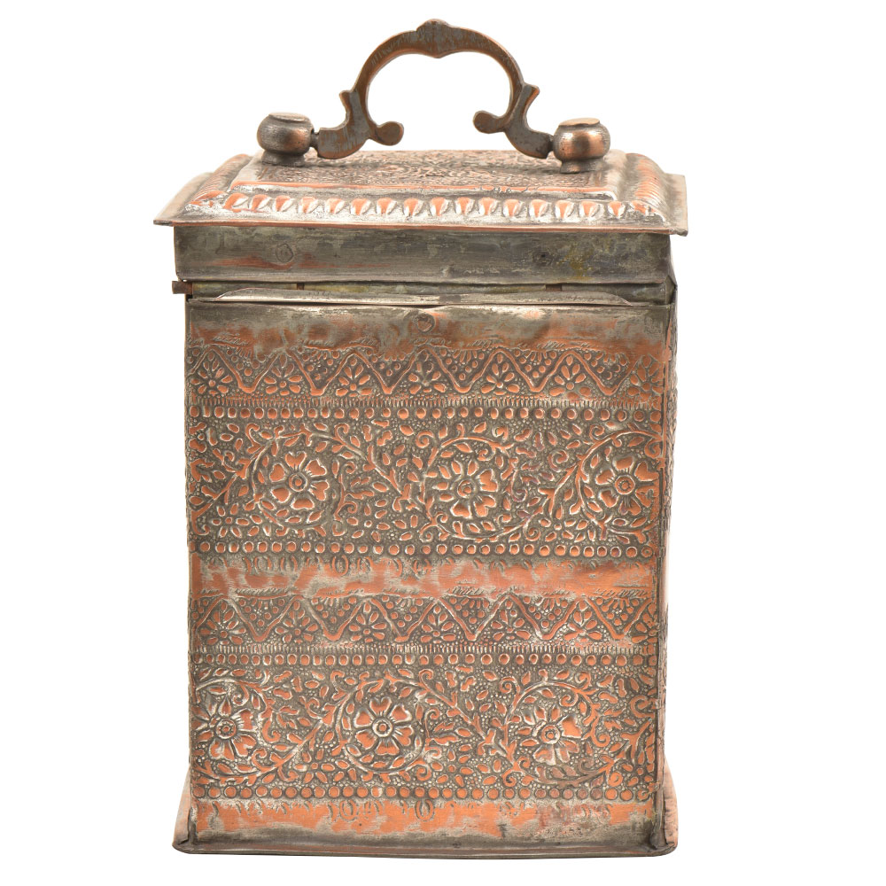 Handmade vintage Copper storage box or canister has a simple, classic design will add a touch of class to any set of decor due to its elaborate repousse design on the box as well as the lid. It also has a latch that keeps the stuff safe and secure.