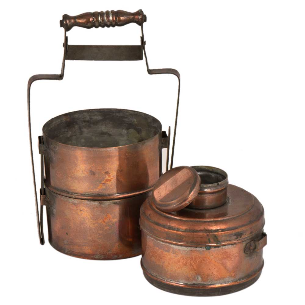 • Copper Three Tier Tiffin Box With A Small Box on Top With Adjustable Handle