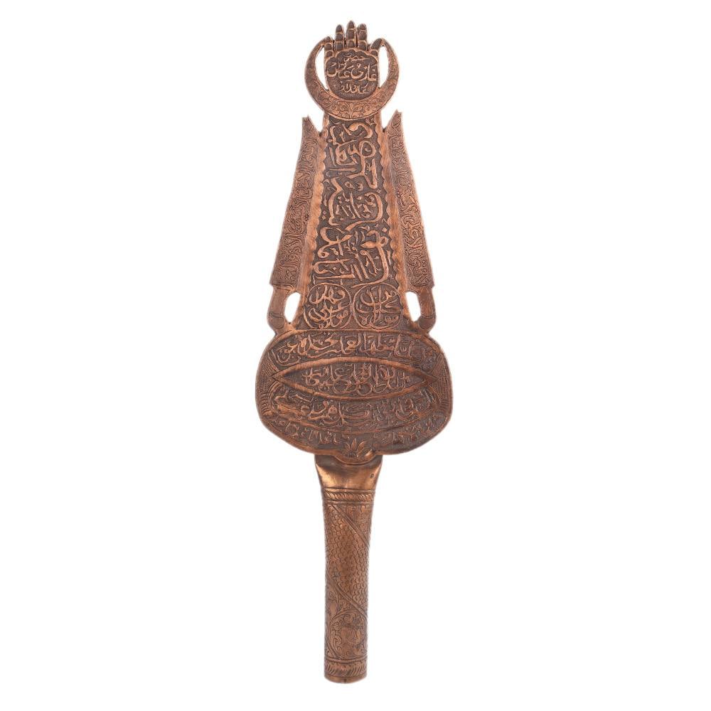This Copper with Urdu inscriptions is a true blue vintage beauty and delight. Although the brass decor carries signs of minor wear and imperfections, it is an important part of its overall appeal. Since each Copper door knocker with Urdu inscriptions is handcrafted, it may differ from the modern and cheaper version of such heritage items. The awesome combination of craftsmanship and creativity turns out to be a vintage collectors edition.