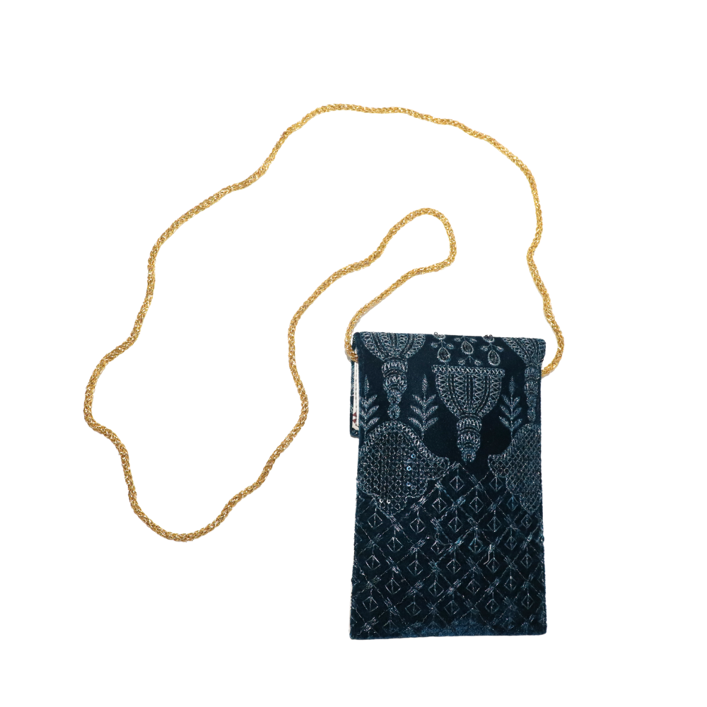 Elevate your style with this stunning handmade cotton and beads handbag, perfect for adding a touch of elegance to any outfit. Crafted with intricate beadwork, this purse showcases a beautiful blend of luxurious design and artisanal craftsmanship. The deep blue cotton fabric is adorned with detailed bead patterns, making it a unique accessory that is sure to catch the eye. The bag features a stylish gold-tone chain strap, allowing you to wear it comfortably as a crossbody or shoulder bag. Whether you're attending a formal event or a casual gathering, this versatile handbag is an ideal choice. Ideal for those who appreciate quality craftsmanship and timeless design, this handmade cotton and beads handbag will make a beautiful addition to your collection. It's the perfect accessory for carrying your essentials in style while making a lasting impression.