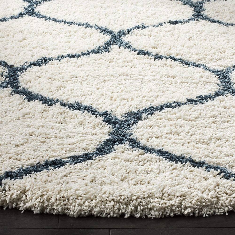 Add elegance and comfort to your interiors with this Ivory & Slate Blue microfiber shaggy rug. The trellis pattern combines modern charm with cozy texture, making it a stunning addition to bedrooms, lounges, or boutique displays. Packed & quality-checked by Indianshelf.