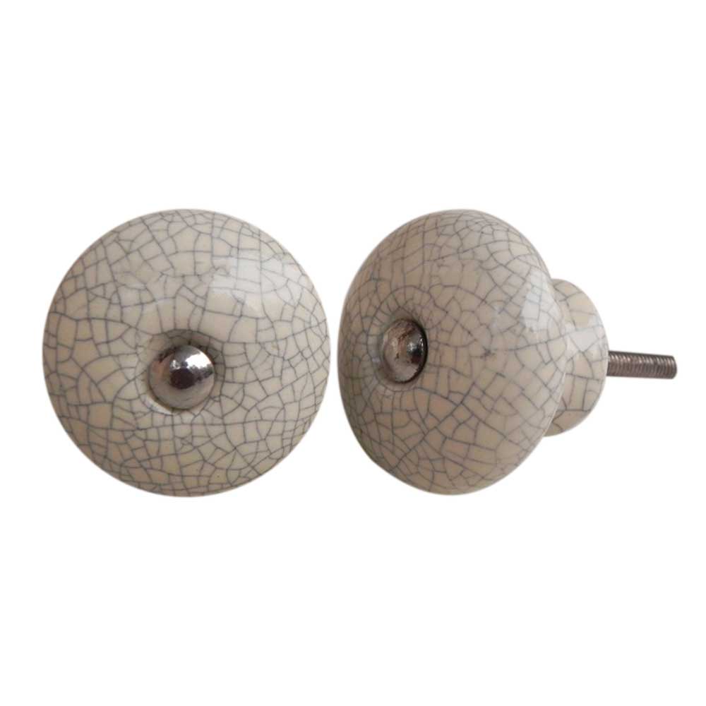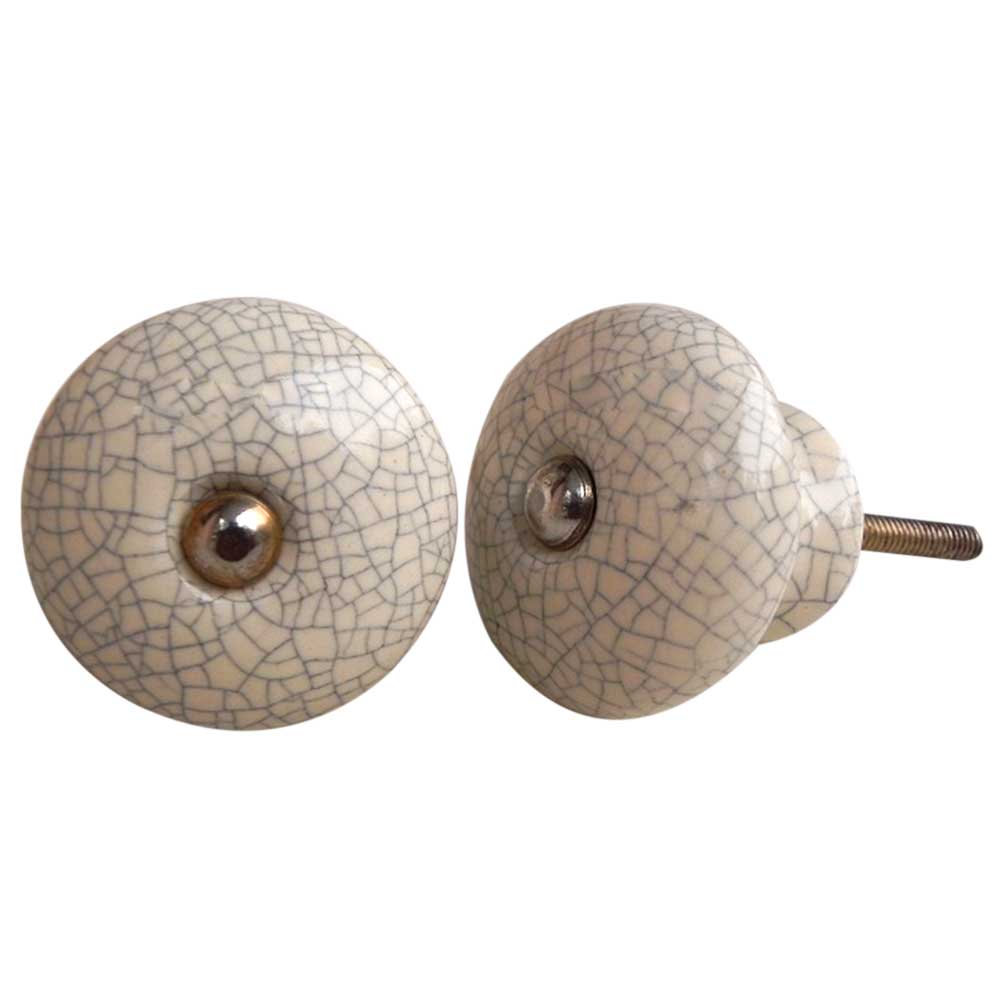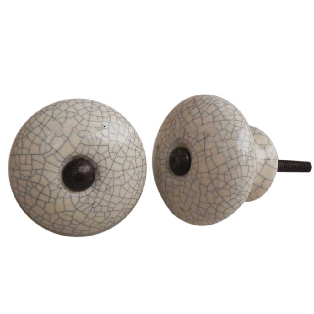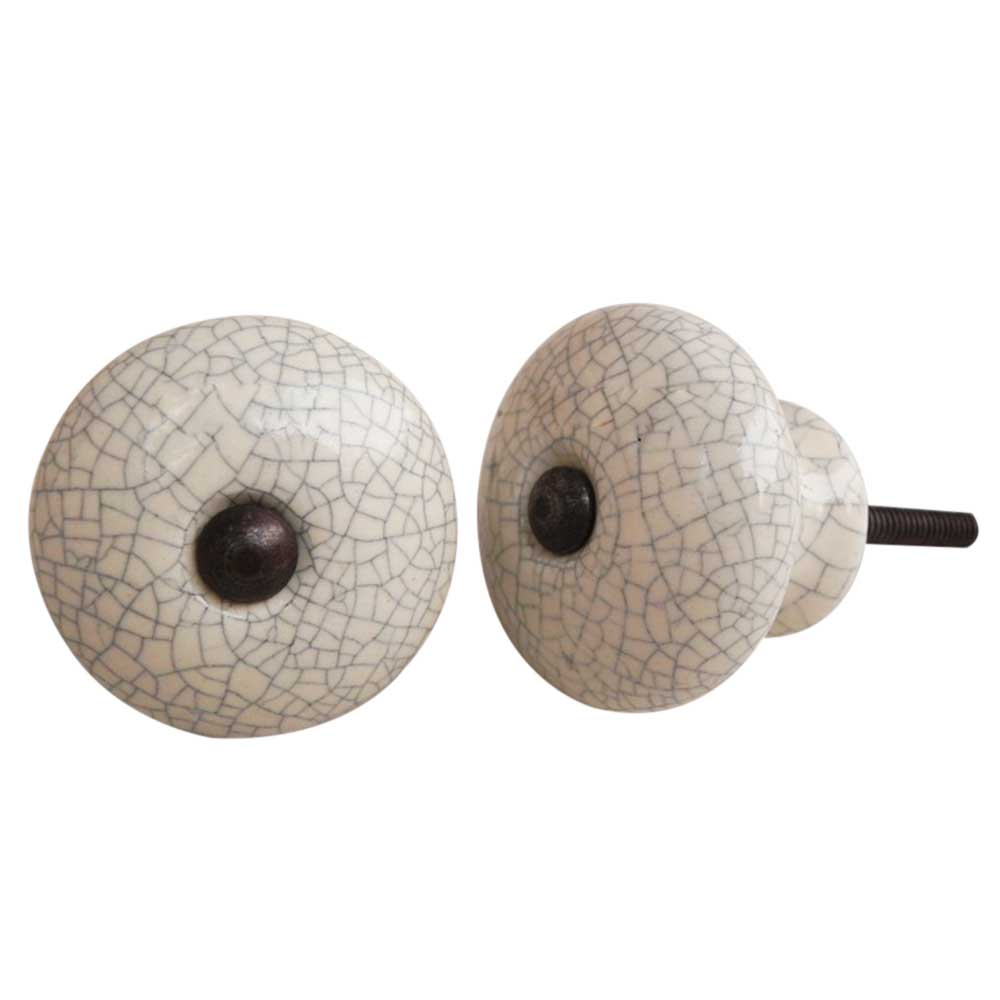 Cream And Black Crackle Ceramic Furniture Knob