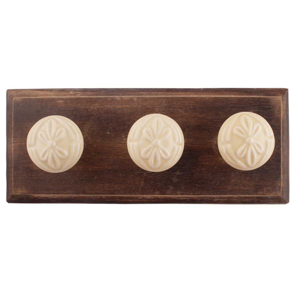 Cream Anemone Ceramic Flower Wooden Hooks. A Perfect Complement to the Soft Tone of the Wood are these White Traditional Hat and Coat Hook Made of Genuine Porcelain and Brass. It can be used to Hang Jewelry, Leashes, Towels, Scarves, Light Weight Sweaters, Caps etc.