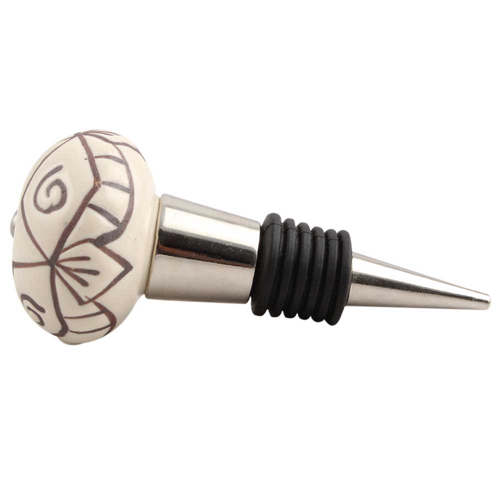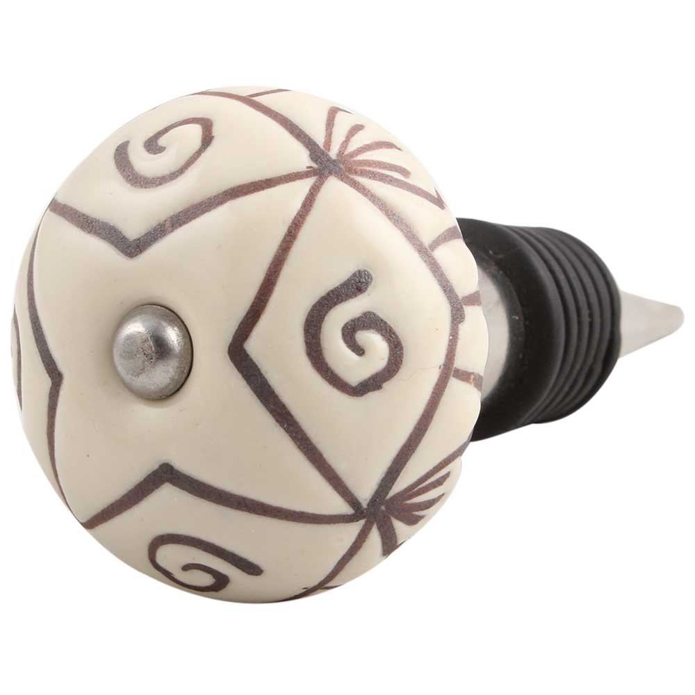Cream Base Brown Etched Ceramic Wine Stopper