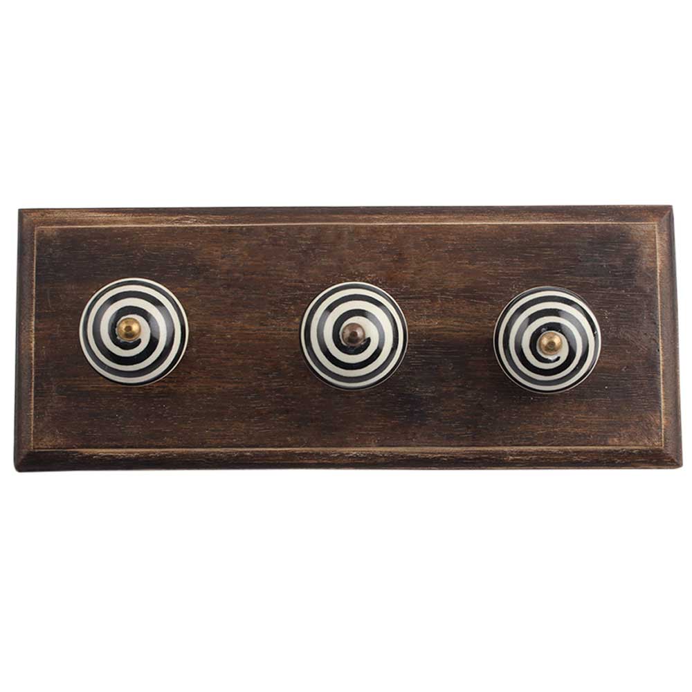 Cream Black Strip Wooden Hooks . A Perfect Complement to the Soft Tone of the Wood are these White Traditional Hat Coat Hook Made of Genuine Porcelain and Brass. It can be use to Hang Jewellery, Leashes, Towels, Scarves, Light Weight Sweaters, Caps Etc.