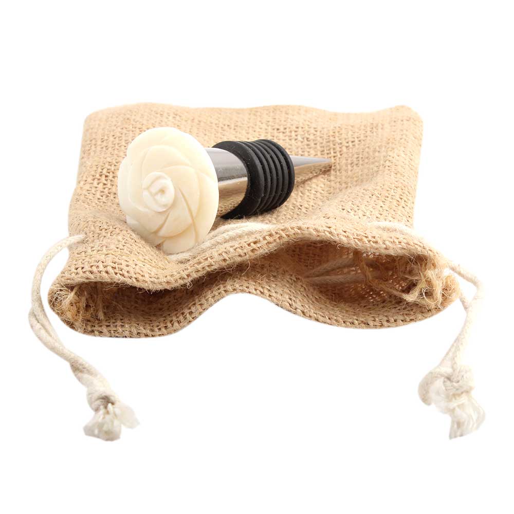 Cream Bone Wine Stopper.zinc alloy wine bottle stopper with attractive Jute Bag Packaging.