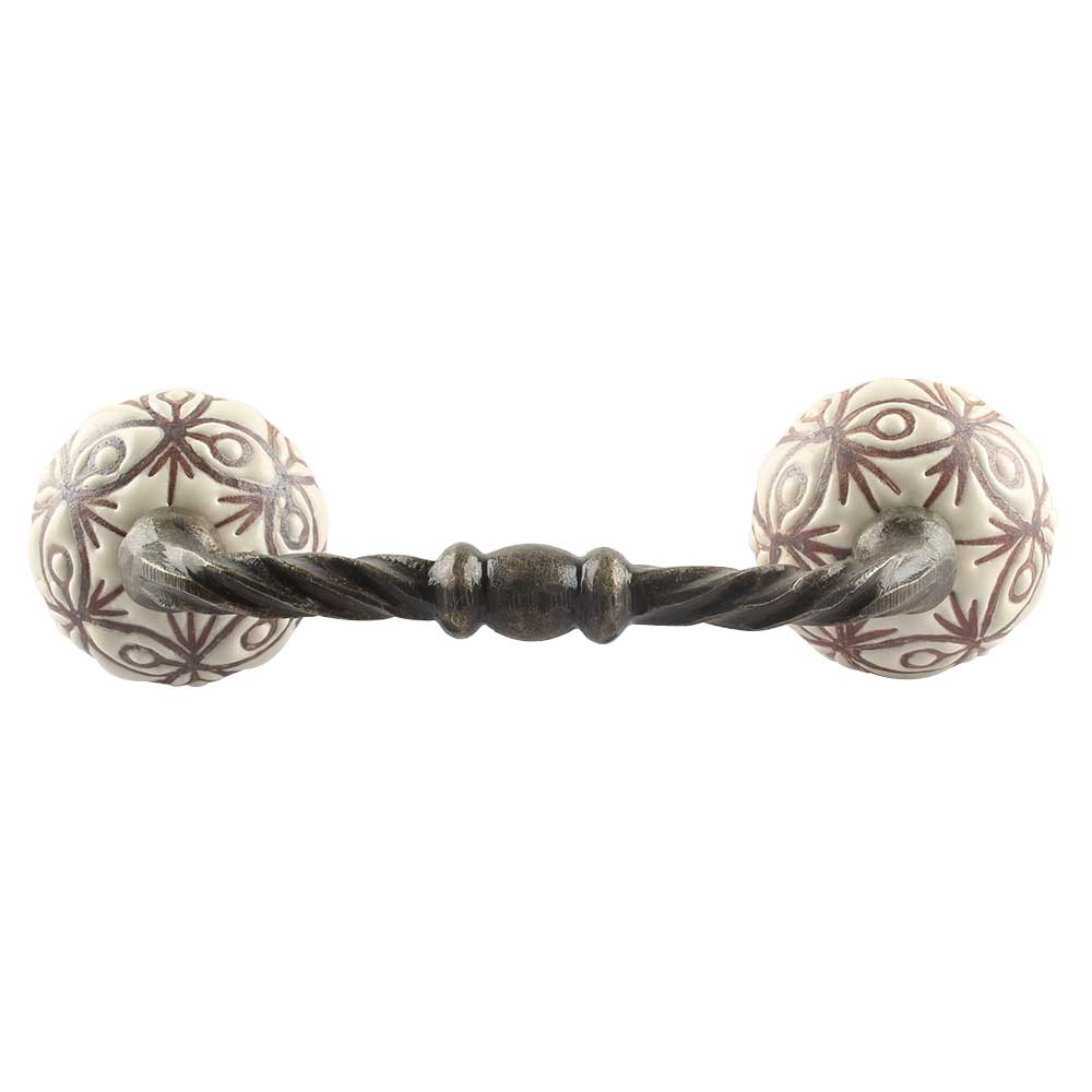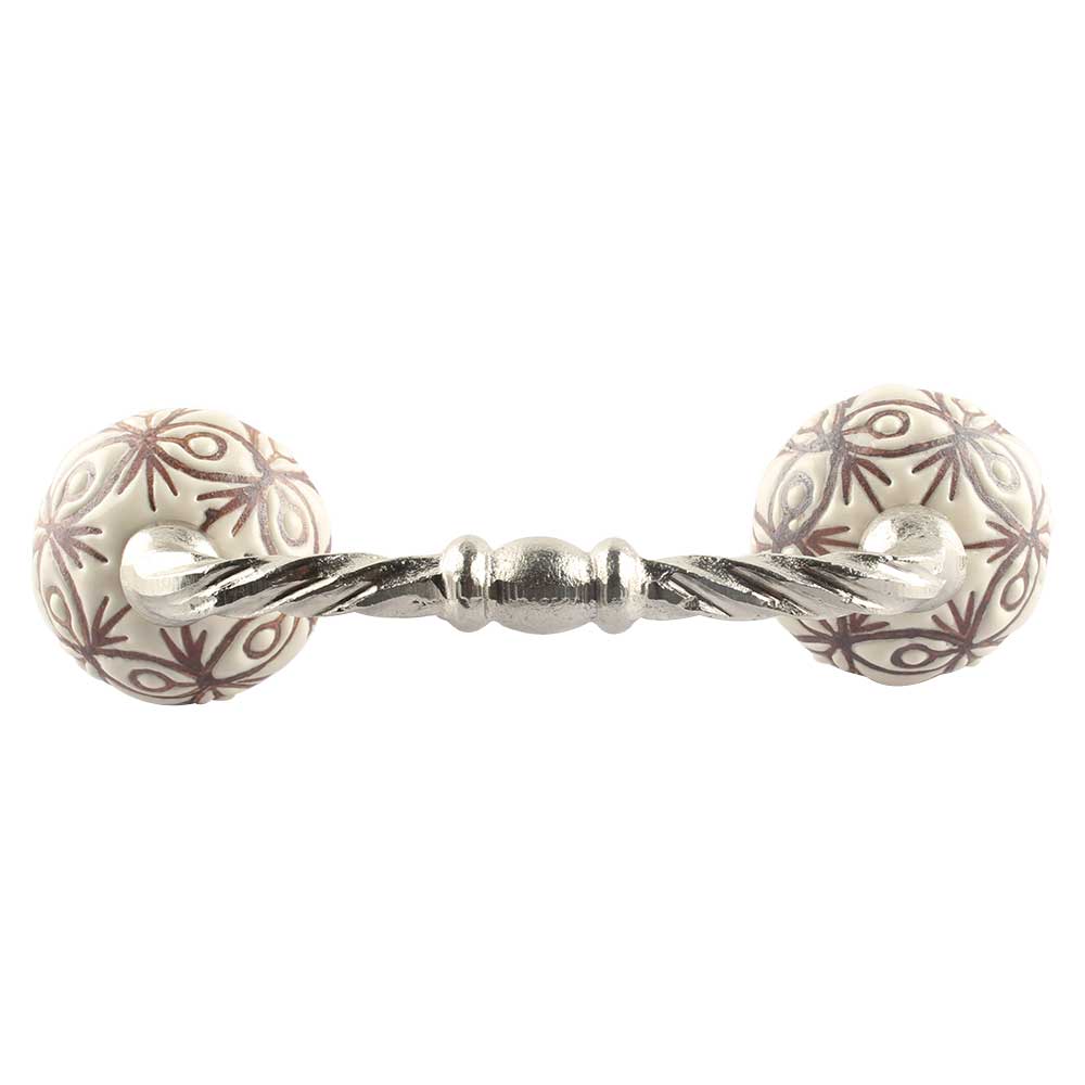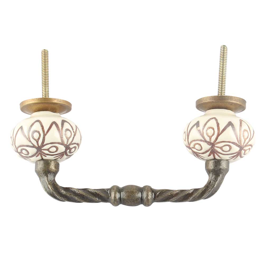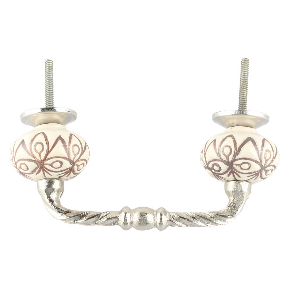 Cream Brown Floral Etched Ceramic Cut Bridge Handle Online. Ideal for Drawer, Dresser, Cabinet, Wardrobe, Cupboard and Almirah etc.