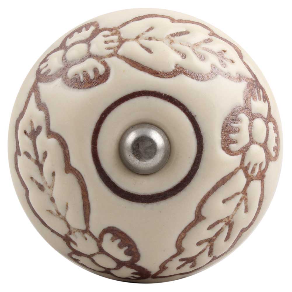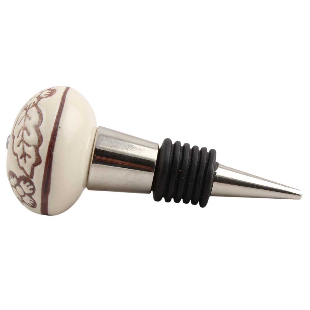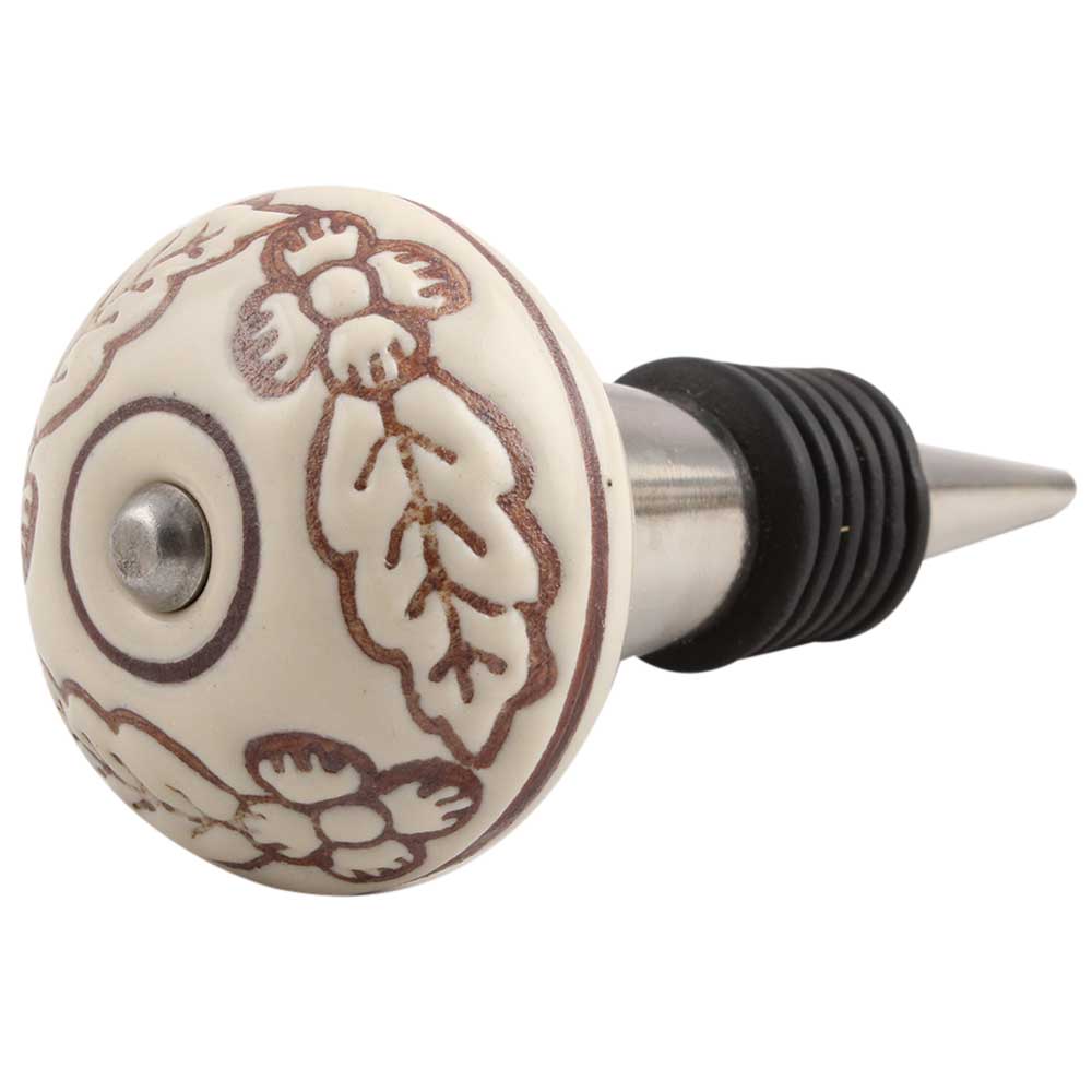 Cream Brown Leaf Flower Etched Ceramic Wine Stopper