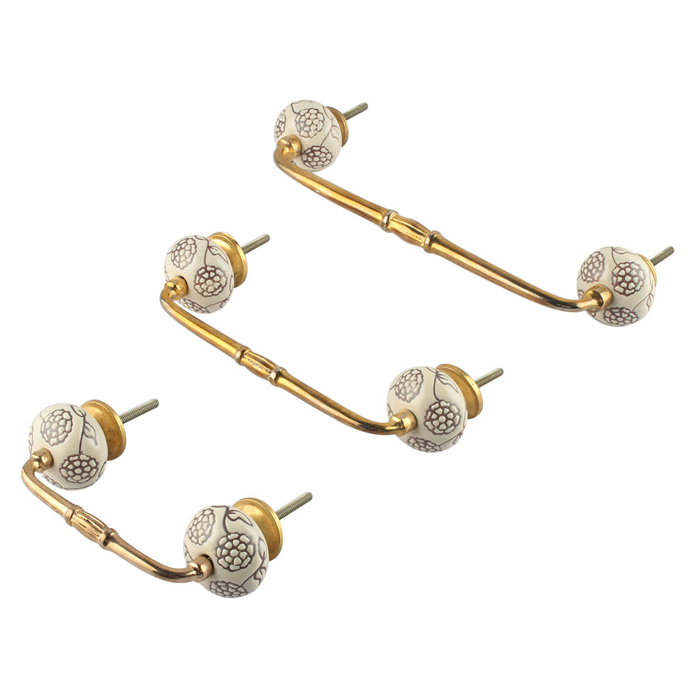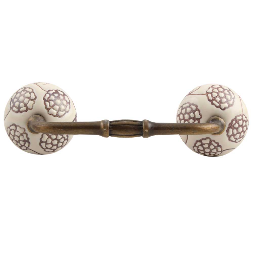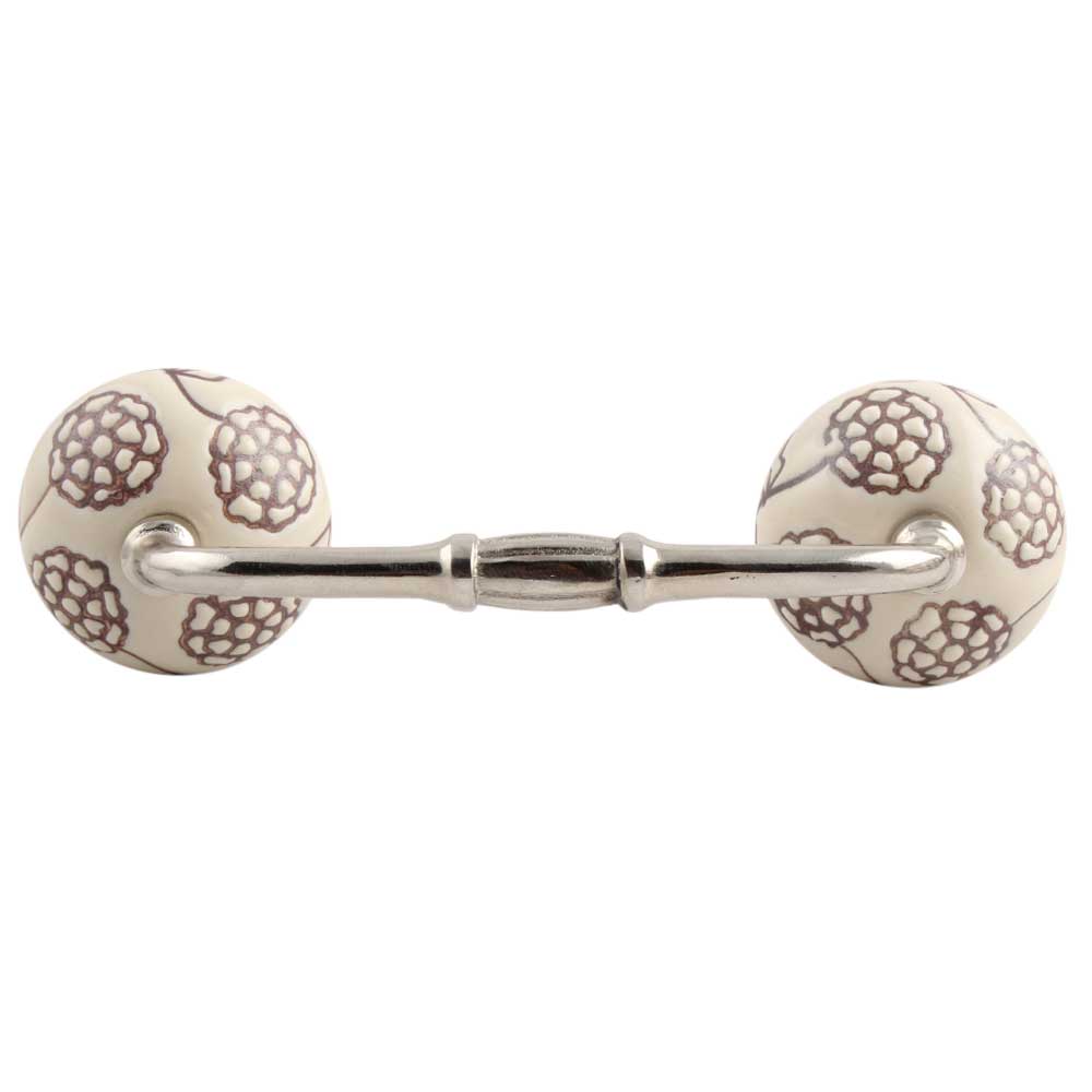Cream Brown Marigold Etched Ceramic Bridge Handle. Ideal for Drawer, Dresser, Cabinet, Wardrobe, Cupboard and Almirah.