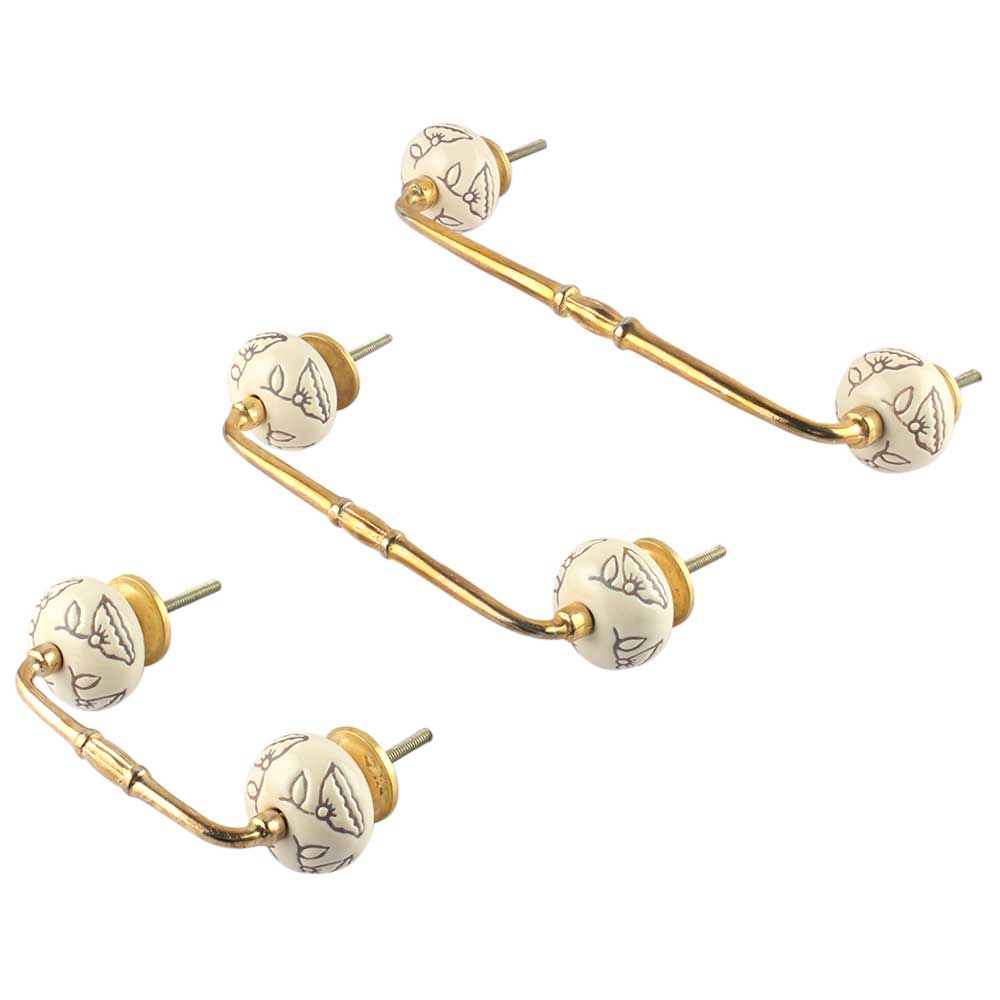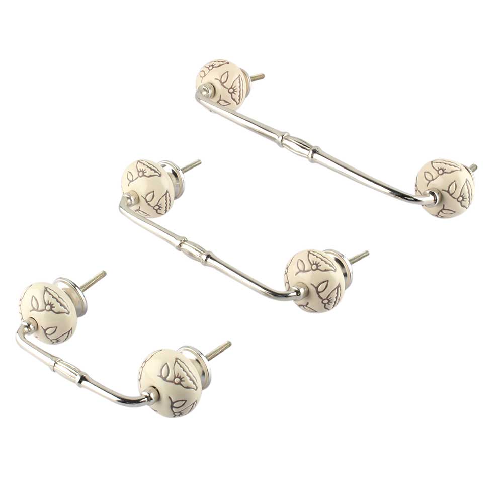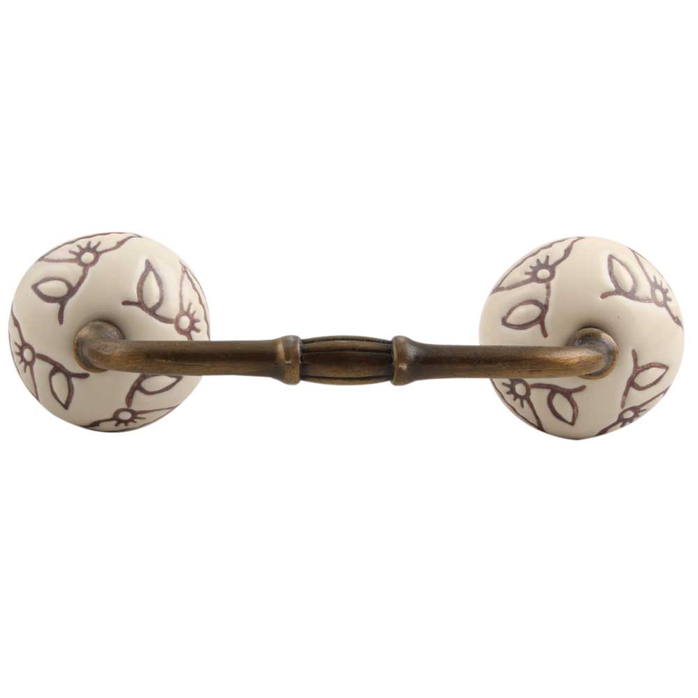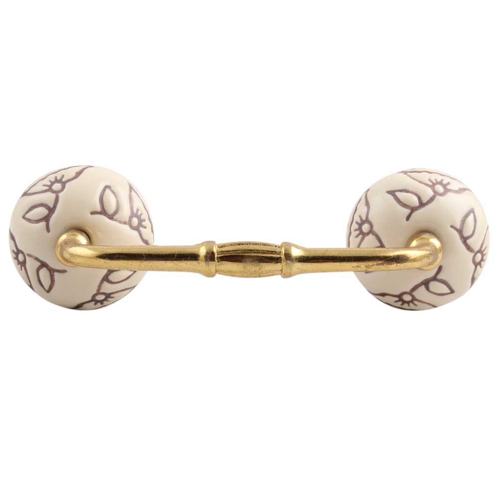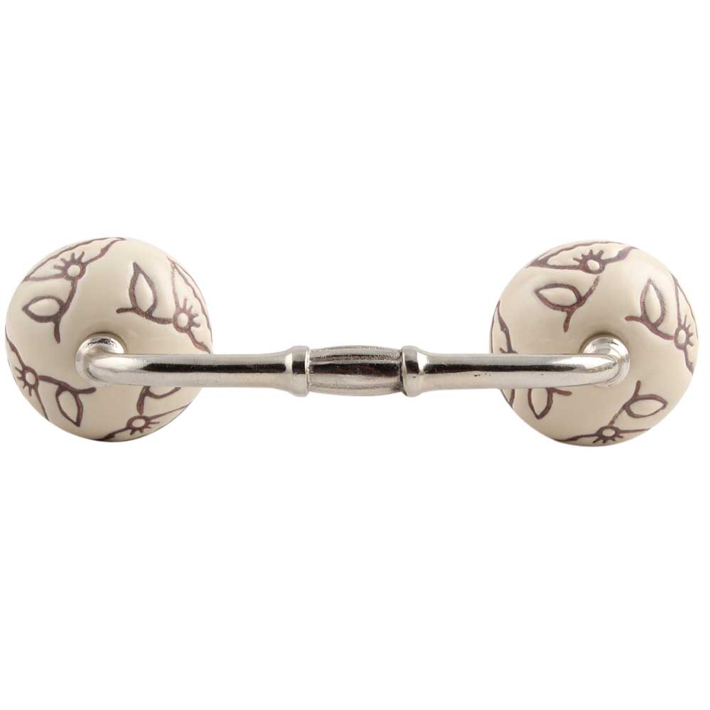 Cream Calla Lily Brown Etched Ceramic Bridge Handle. Ideal for Drawer, Dresser, Cabinet, Wardrobe, Cupboard and Almirah.