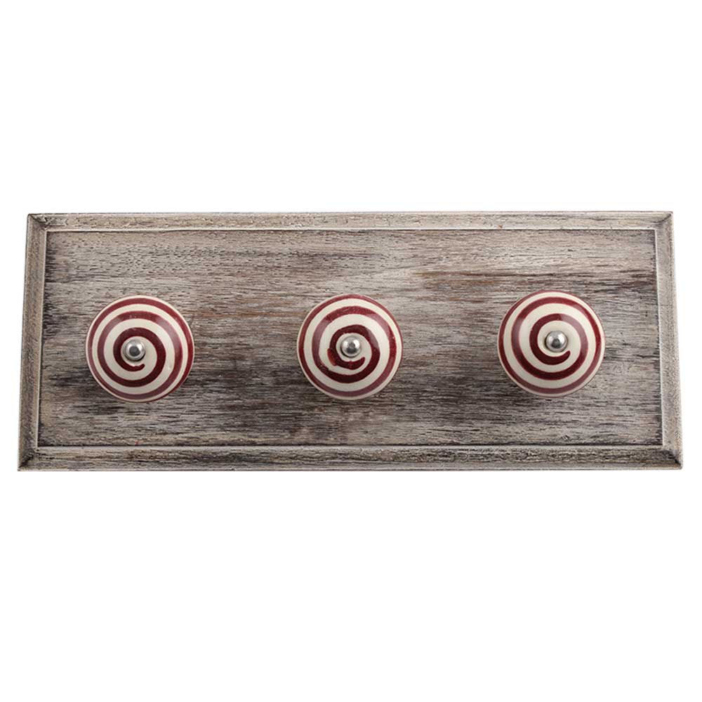Cream Cherry Strip Wooden Hooks . A Perfect Complement to the Soft Tone of the Wood are these White Traditional Hat Coat Hook Made of Genuine Porcelain and Brass. It can be use to Hang Jewellery, Leashes, Towels, Scarves, Light Weight Sweaters, Caps Etc.