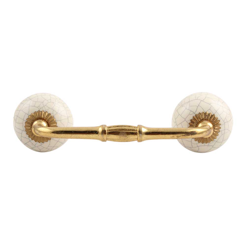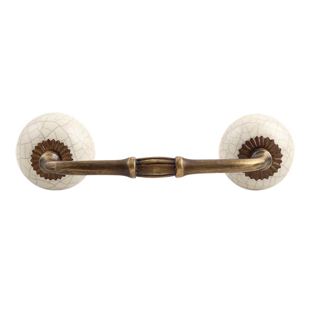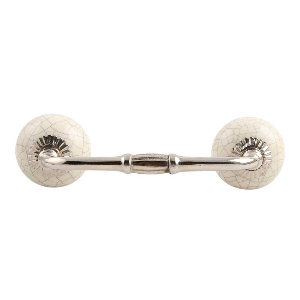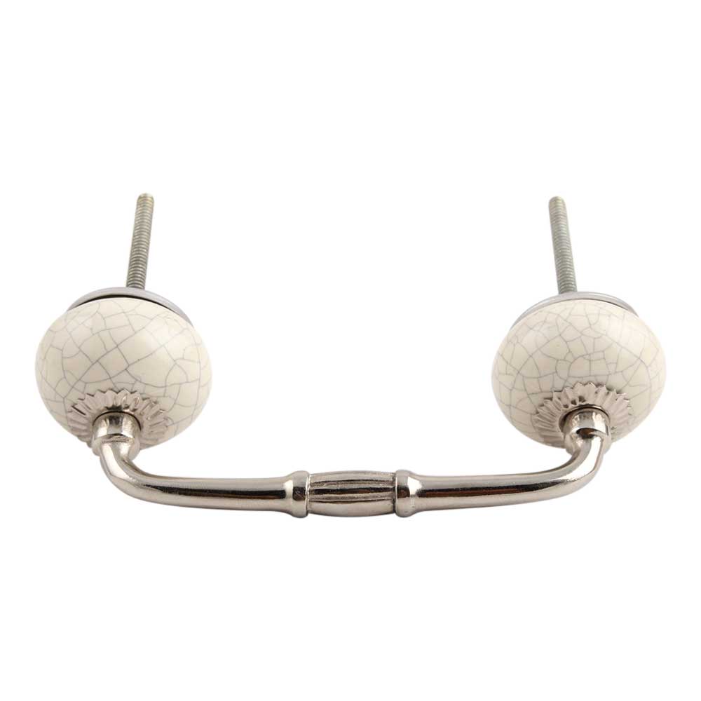 Cream Crackle Ceramic Bridge Handle. Ideal for Drawer, Dresser, Cabinet, Wardrobe, Cupboard and Almirah.