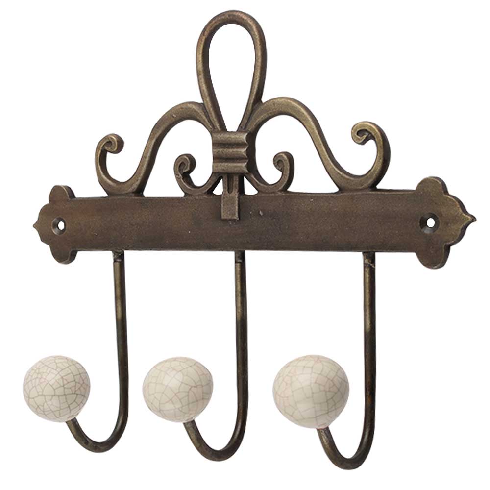 Cream Crackle Ceramic Iron Hook. A Perfect Complement to the Soft Tone of the Wood are these White Traditional Hat & Coat Hook Made of Genuine Porcelain and Brass. It can be use to Hang Jewellery, Leashes, Towels, Scarves, Light Weight Sweaters, Caps Etc.