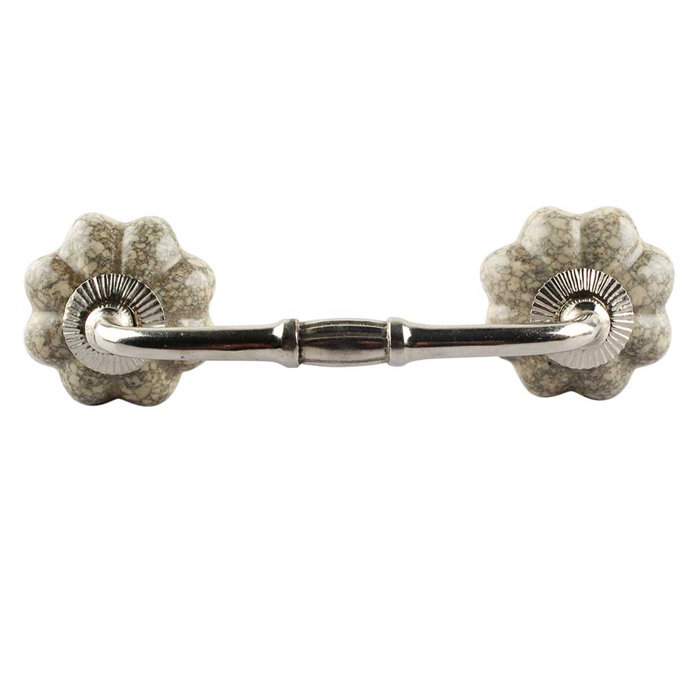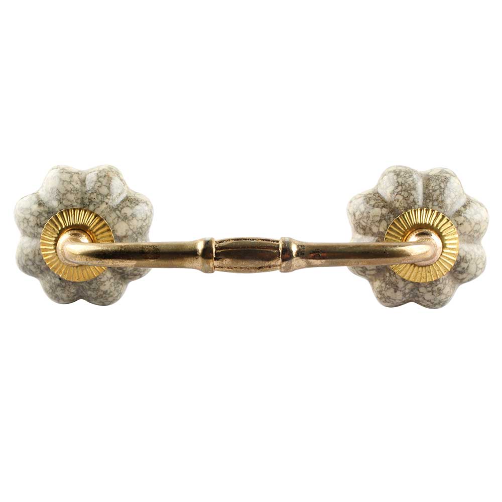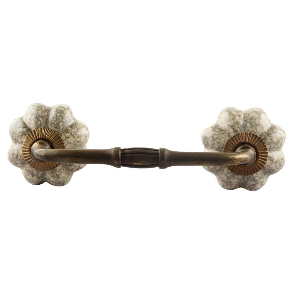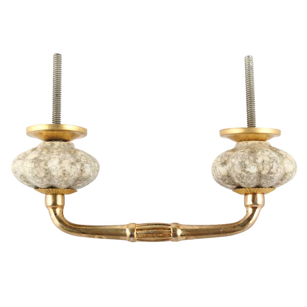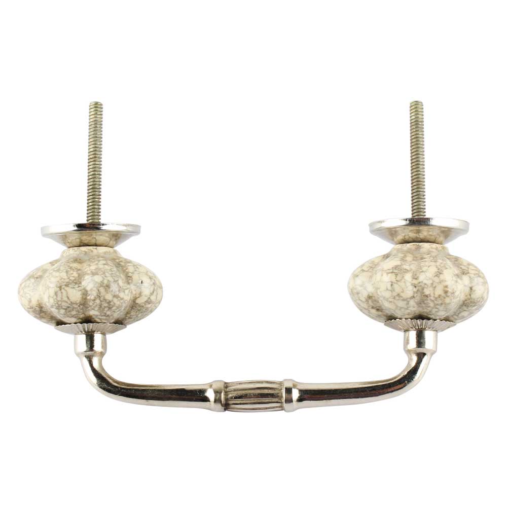 Cream Crackle Ceramic Melon Bridge Handle. Ideal for Drawer, Dresser, Cabinet, Wardrobe, Cupboard and Almirah etc.