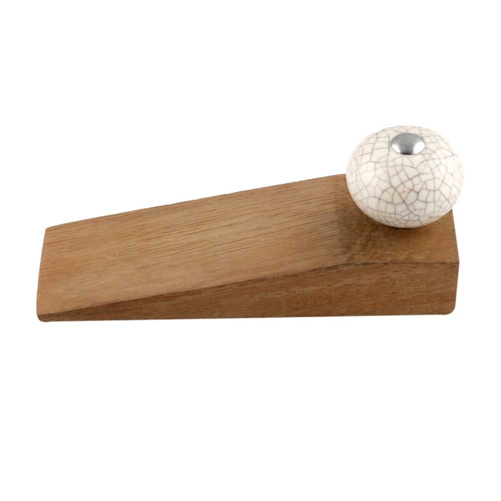 Cream Crackle Ceramic Wooden Door Stopper