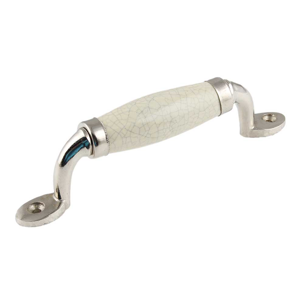 Cream Crackle Small Ceramic Silver Door Handles. Ideal for Drawer, Dresser, Cabinet, Wardrobe, Cupboard and Almirah.
