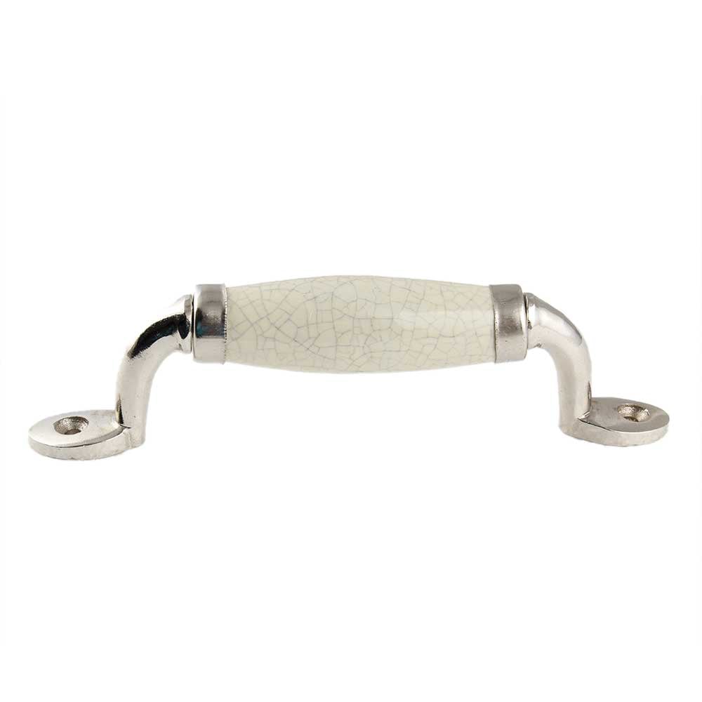 Cream Crackle Small Ceramic Silver Door Handles