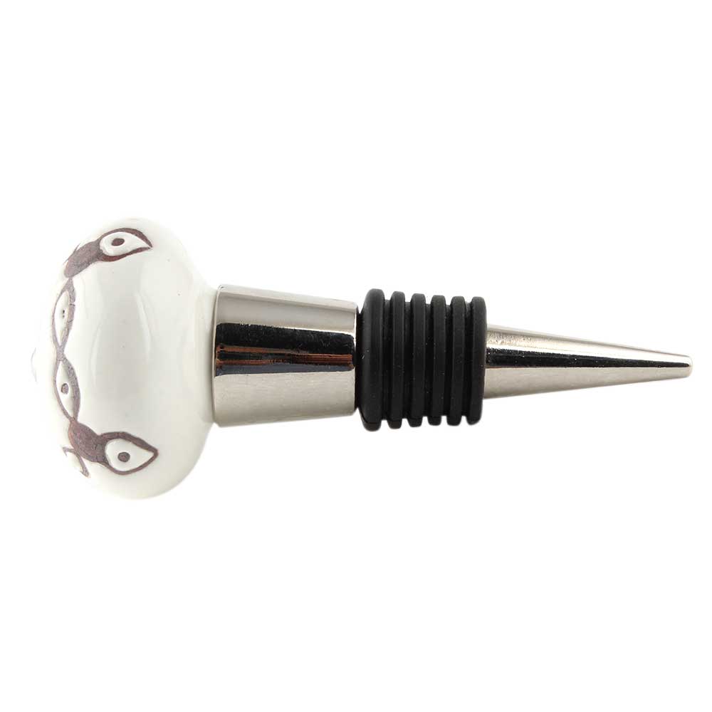 Cream Etched Chain Design Ceramic Wine Bottle Stopper