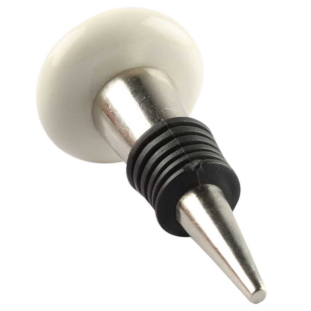 Cream Flower Ceramic Wine Stopper Online. Zinc Alloy Wine Bottle Stopper with Attractive Jute Bag Packaging.