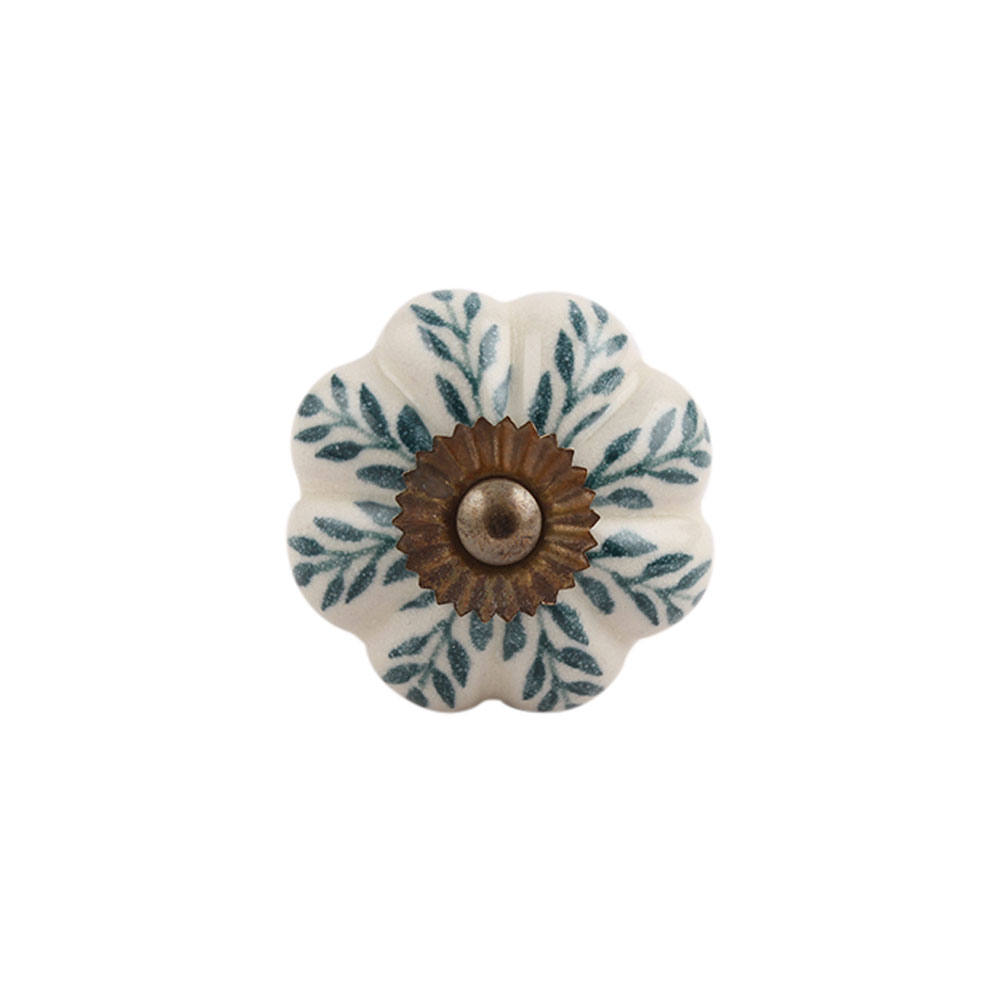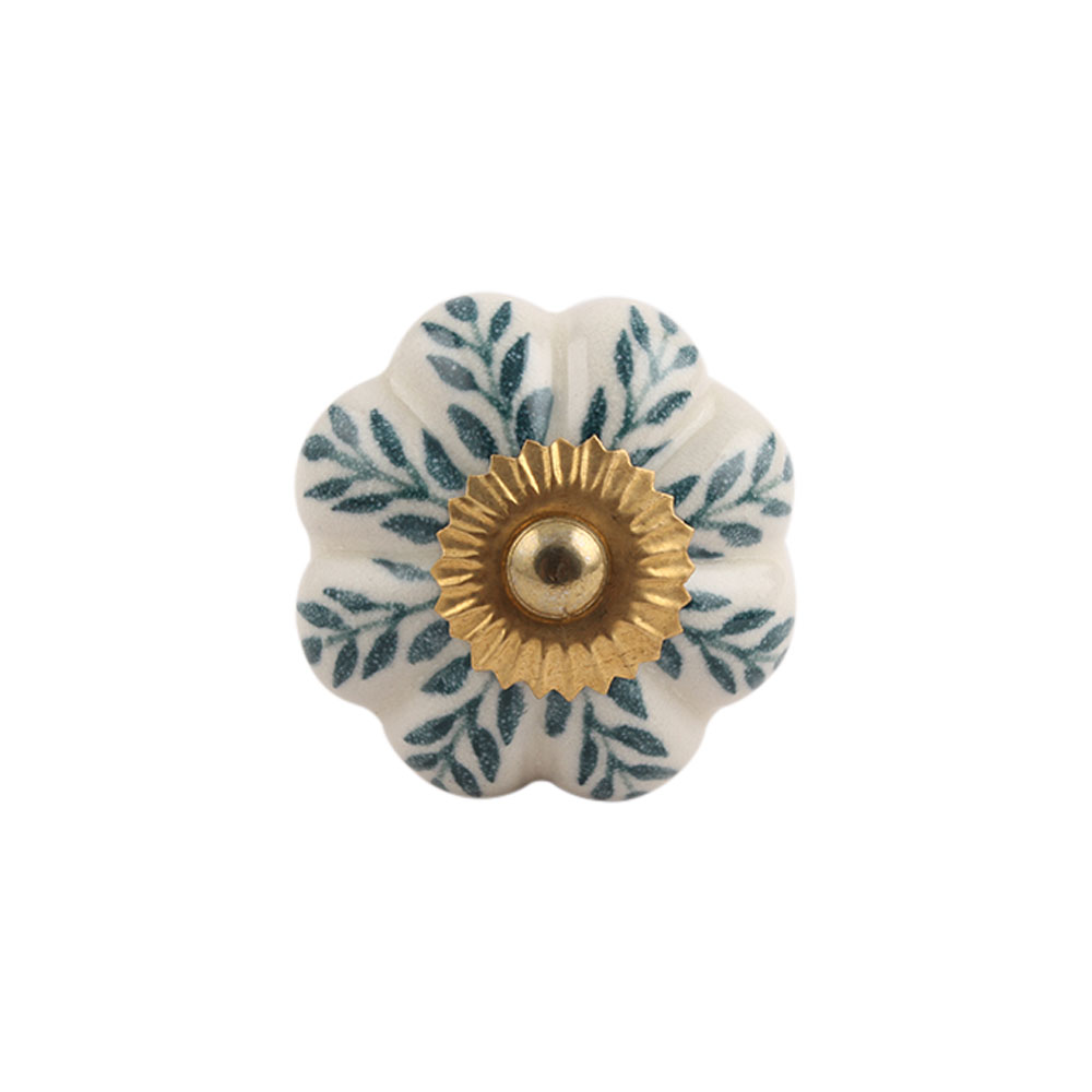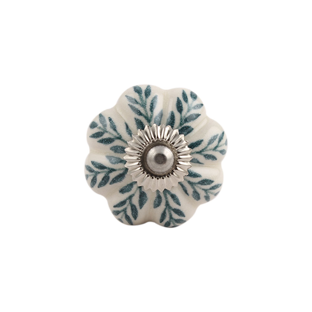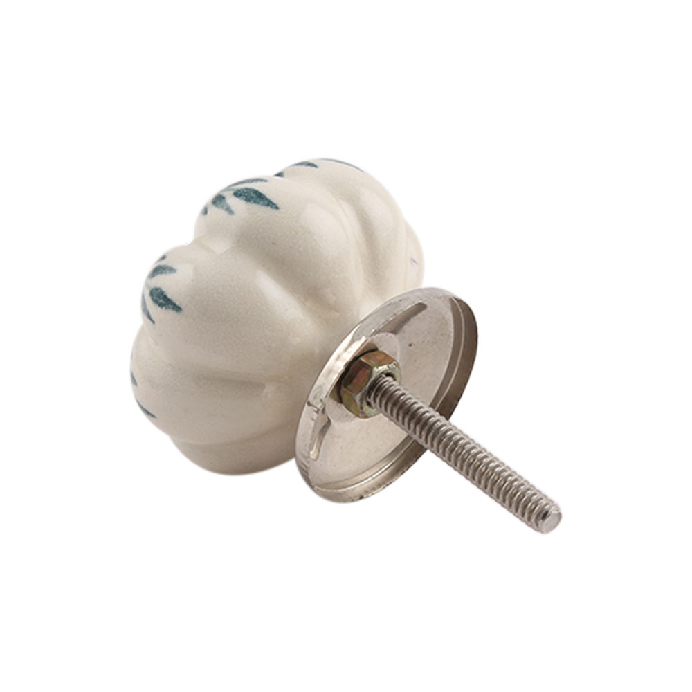 Cream Green Leaf Ceramic Melon Knob