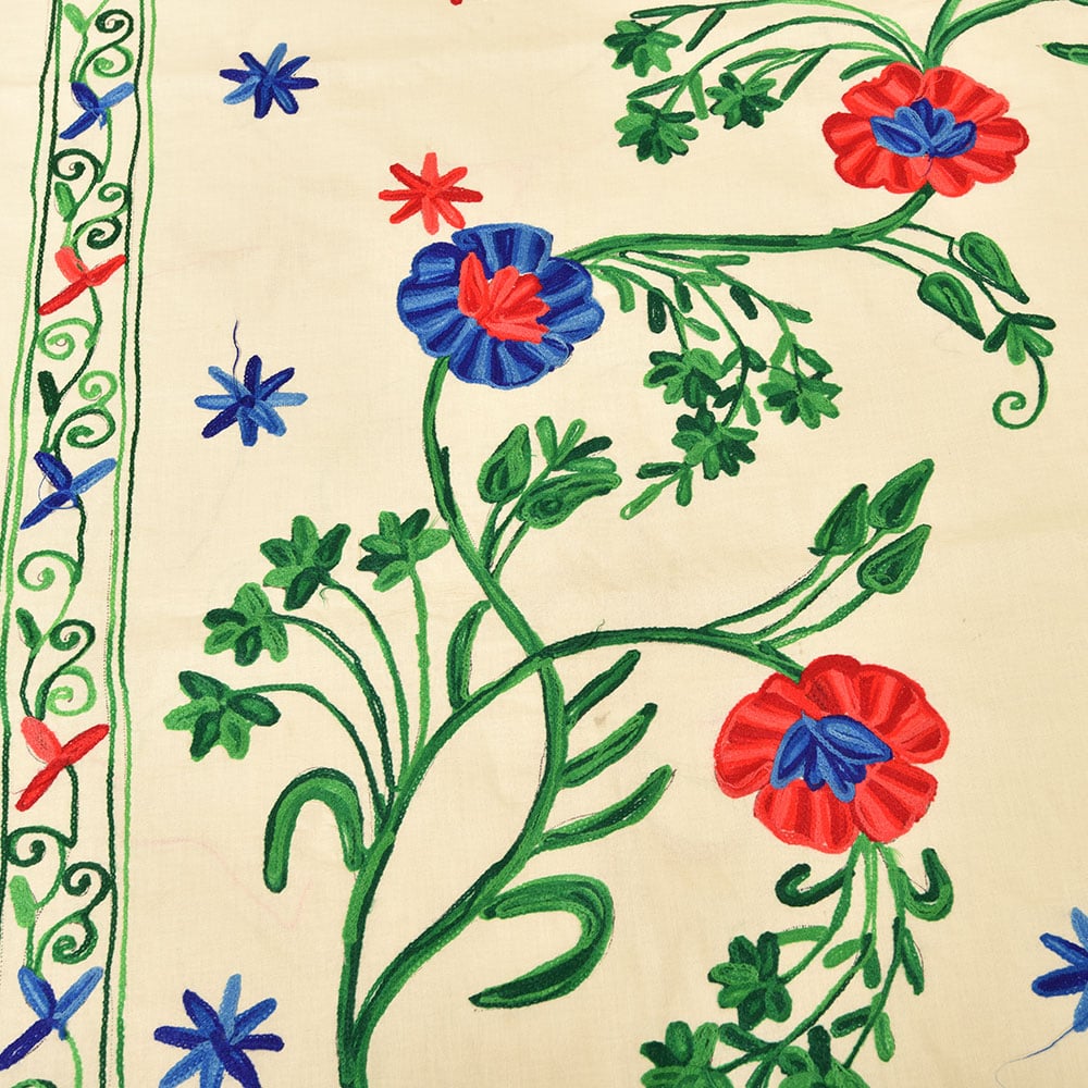• Cream Handmade Double Bed Sheet Linen with Multicolor Floral Design Beautiful Decorative Stylish