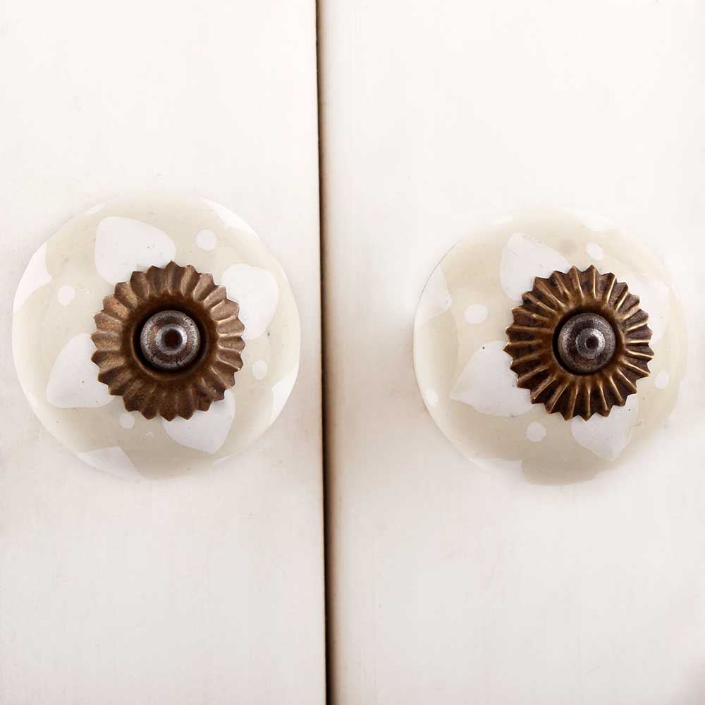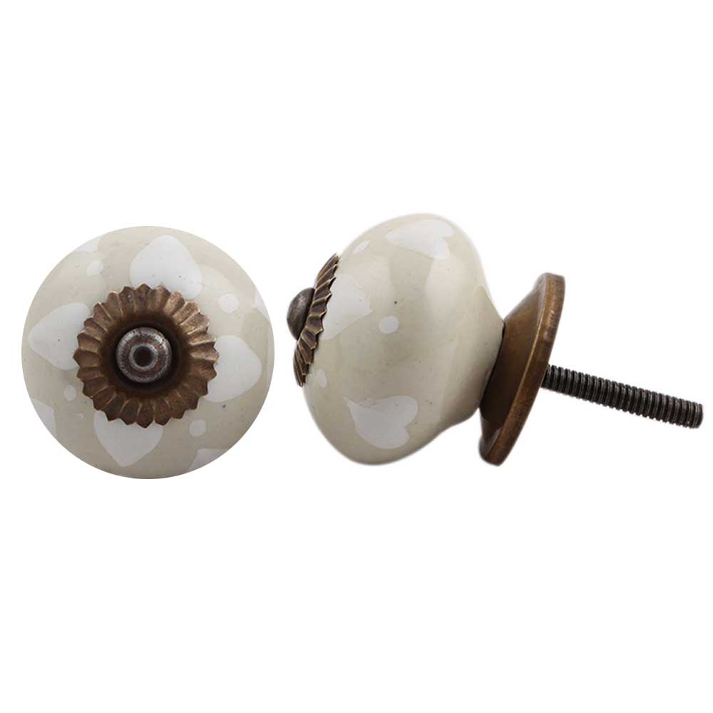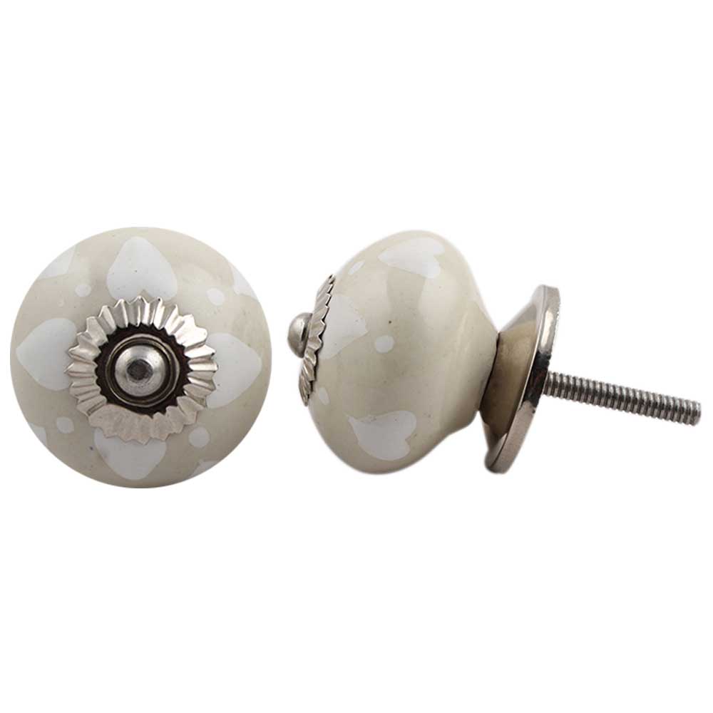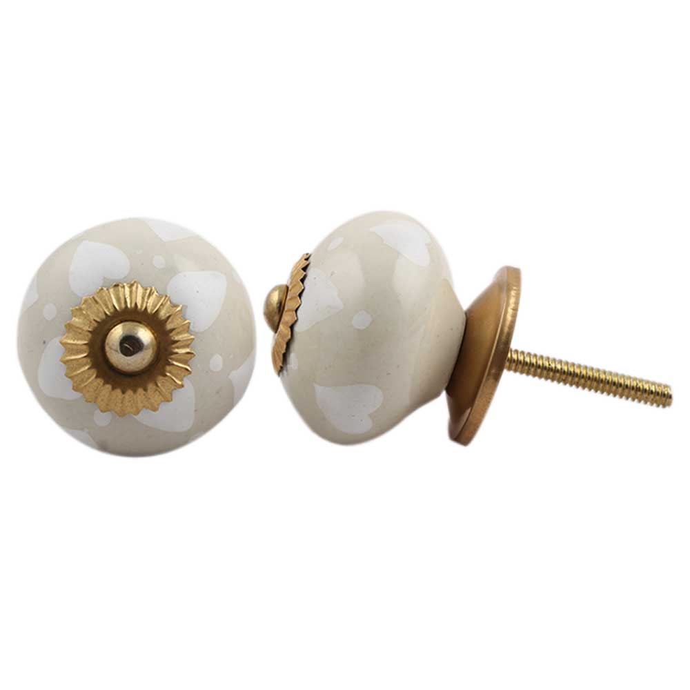 Cream Heart Dot Ceramic Knob. Ideal for kitchen cabinets, kitchen drawers, dining room, bed room, chest drawers, dressing tables, almirah
