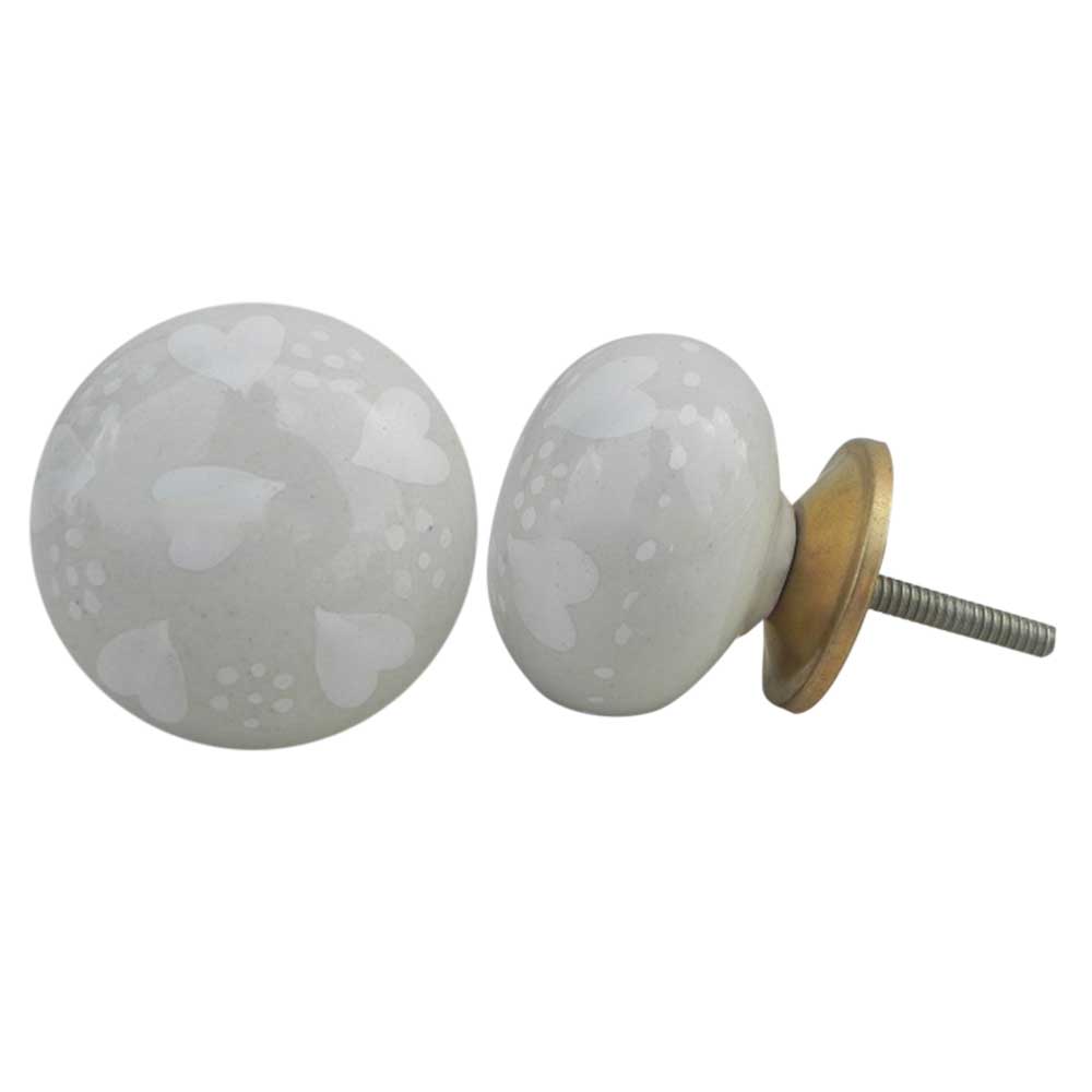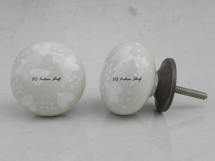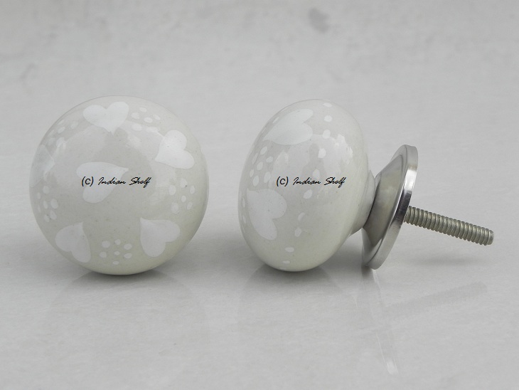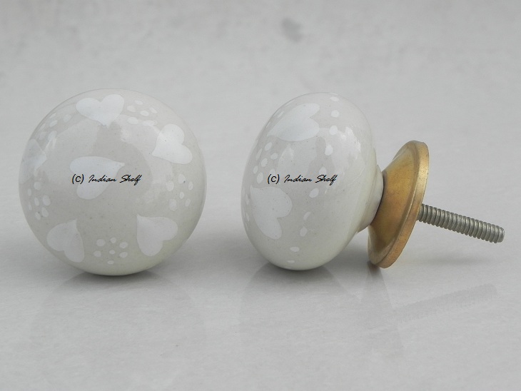 Cream Heart Flat Knob. Ideal for kitchen cabinets, kitchen drawers, dining room, bed room, chest drawers, dressing tables, almirah