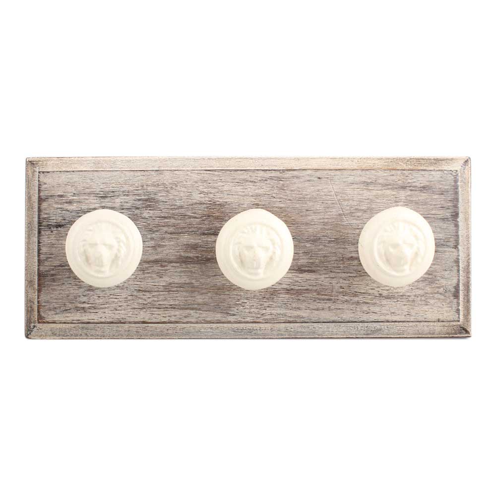 Cream Lion Metal Wooden Hook. A Perfect Complement to the Soft Tone of the Wood are these White Traditional Hat Coat Hook Made of Genuine Porcelain and Brass. It can be use to Hang Jewellery, Leashes, Towels, Scarves, Light Weight Sweaters, Caps Etc.