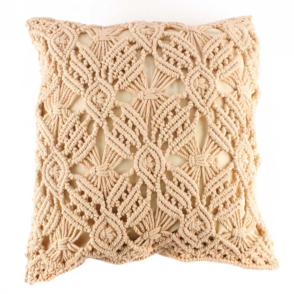 • Cream Macrame Vintage Cushion Cover