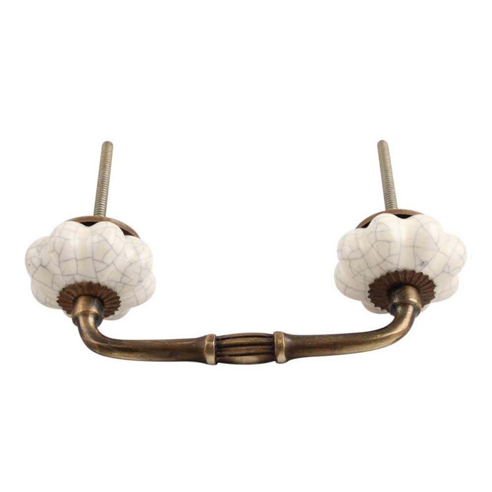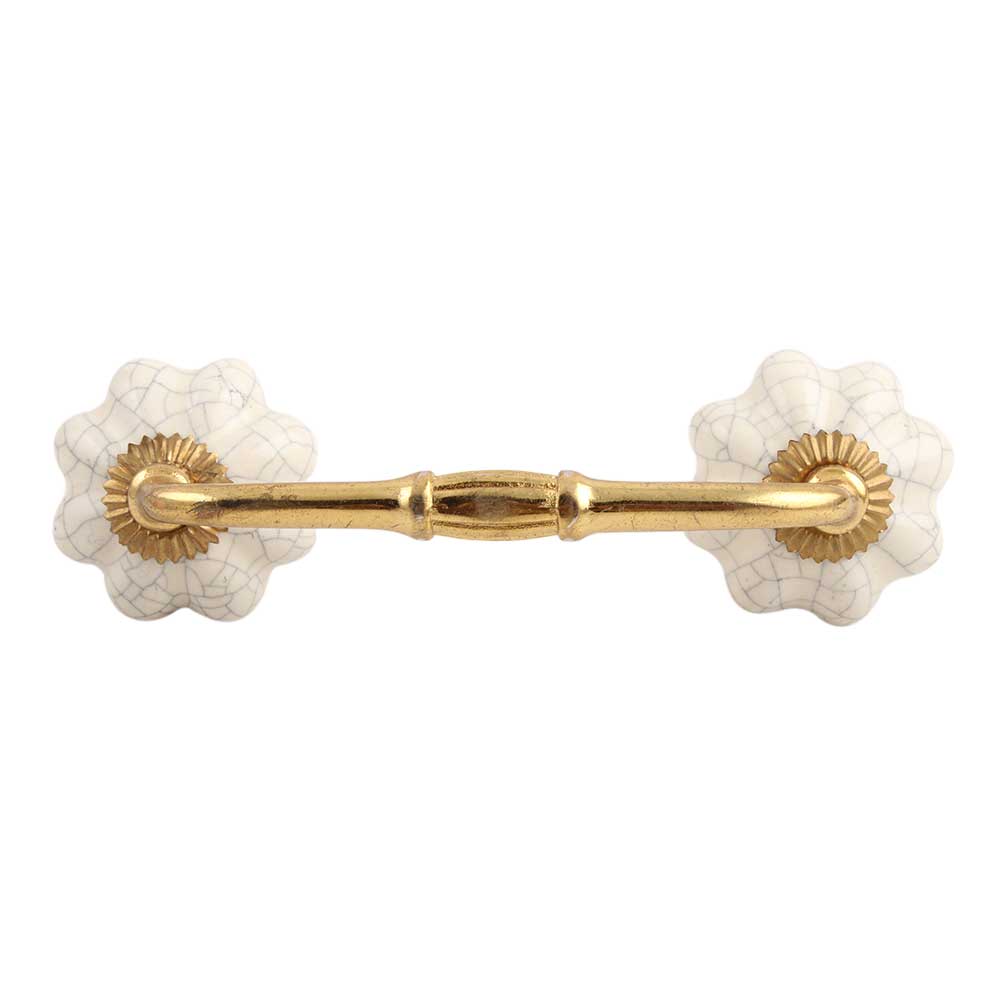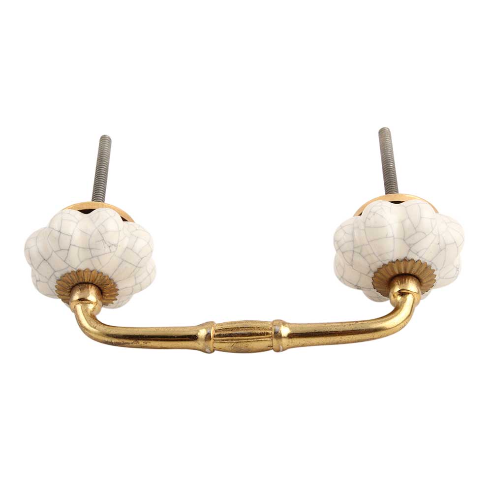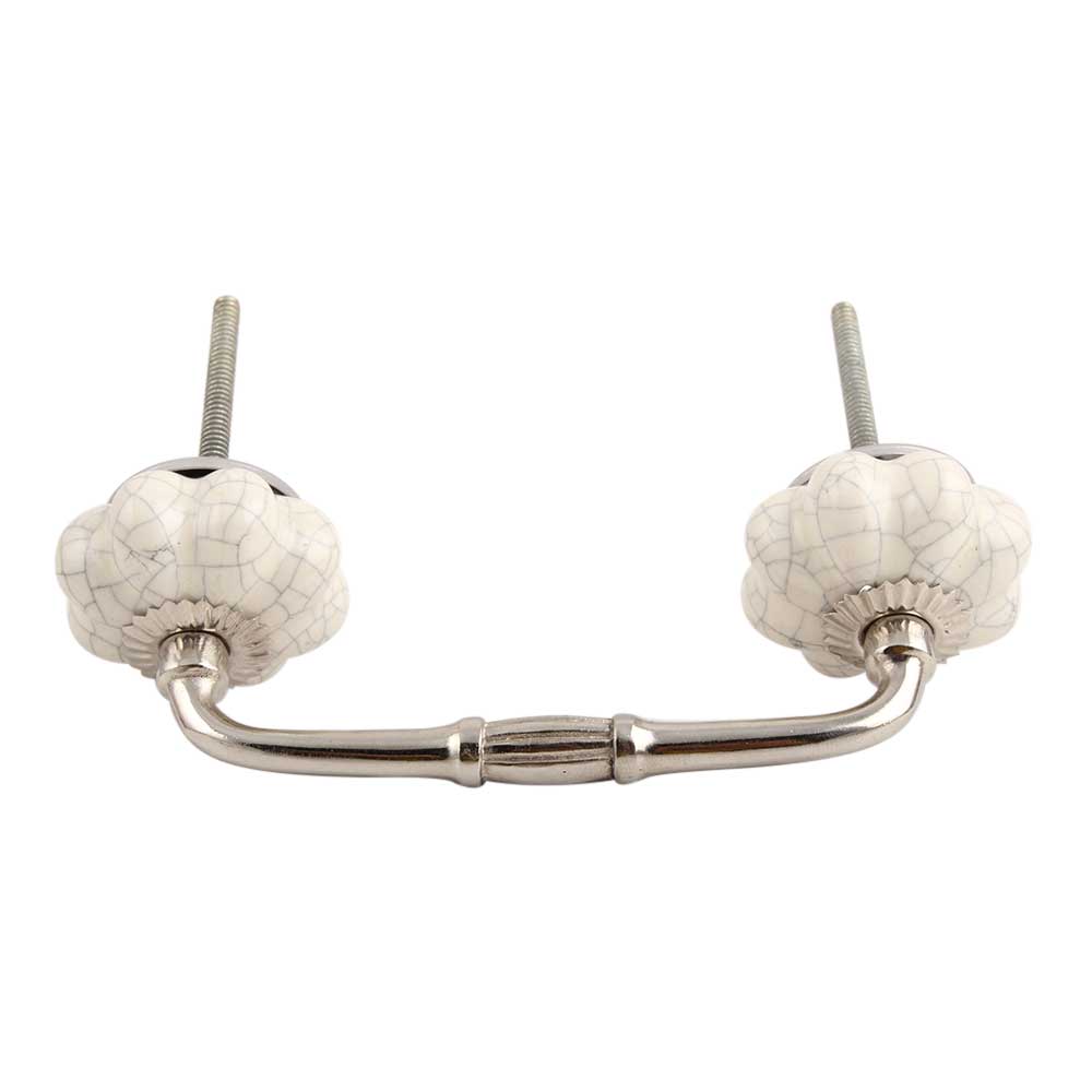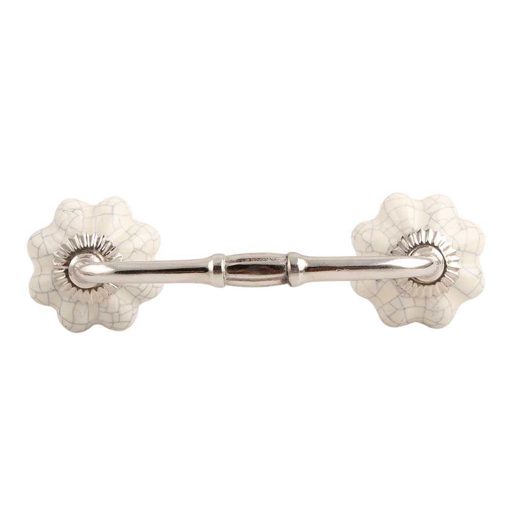 Indianshelf.com for bulk/wholesale orders.Indianshelf.us for personal purchases.Enhance your home’s aesthetic with the Cream Melon Crackle Ceramic Bridge Handle. This beautifully crafted handle combines the charm of ceramic with the sleekness of a bridge-style design, making it a perfect choice for any modern or traditional cabinetry. With its soft cream color and unique melon crackle texture, this handle offers both elegance and functionality, transforming your kitchen, bathroom, or furniture into a stylish masterpiece.