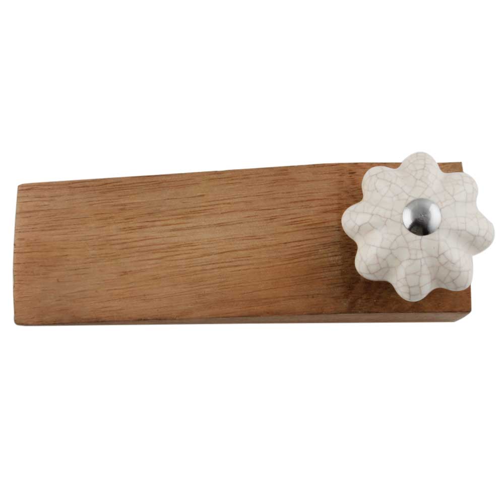 Handmade Ceramic and Wooden Door Stopper.Wooden Door Stopper with a Ceramic Knob to Carry it Easily. This Wooden Door Stopper has Glue Dots under it to Ensure that it does not Slip. It is Handmade by the Craftsmen of India and this Innovative Door Stopper won't Disappoint You.