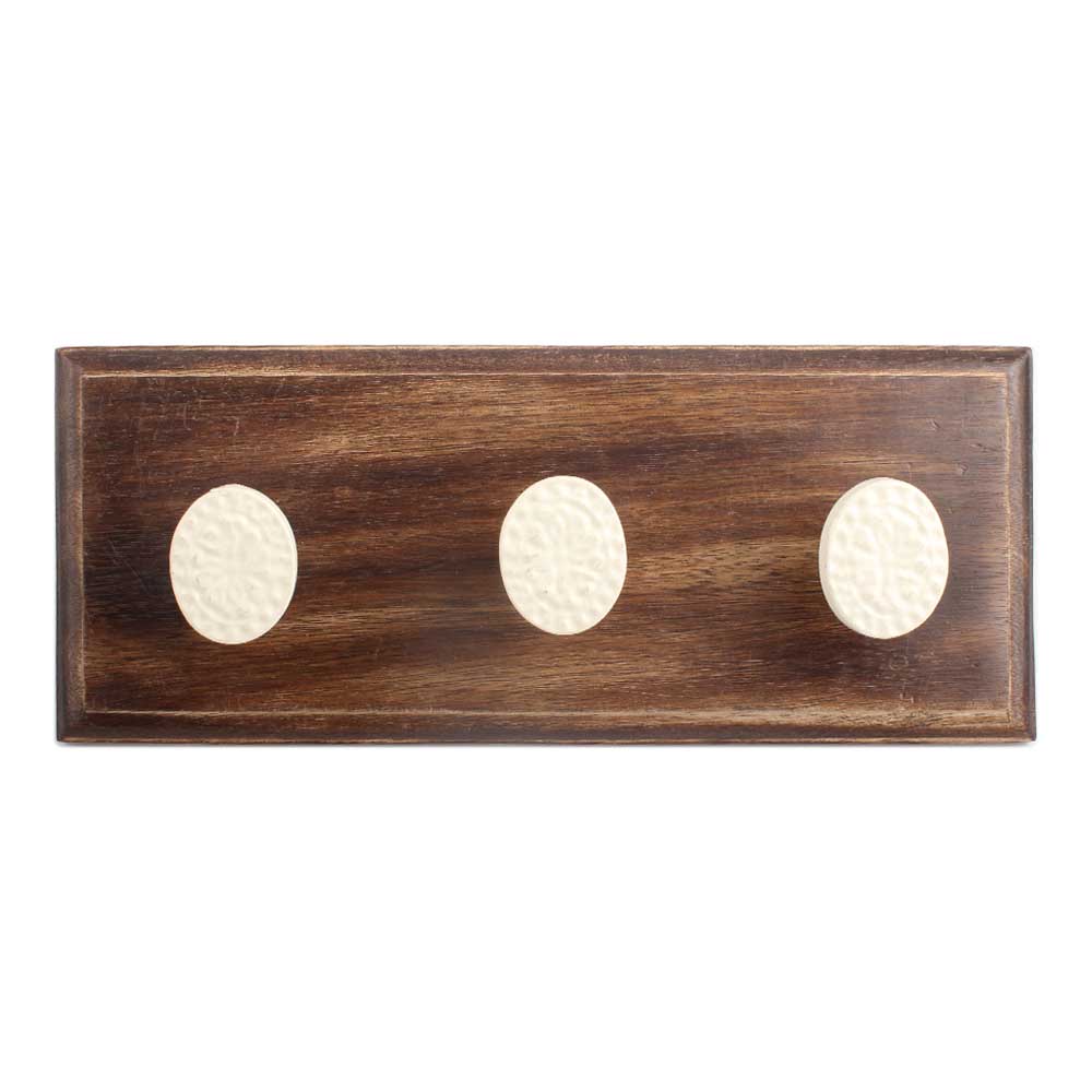 Cream Oval Flower Metal Wooden Hook. A Perfect Complement to the Soft Tone of the Wood are these White Traditional Hat & Coat Hook Made of Genuine Porcelain and Brass. It can be use to Hang Jewellery, Leashes, Towels, Scarves, Light Weight Sweaters, Caps Etc.