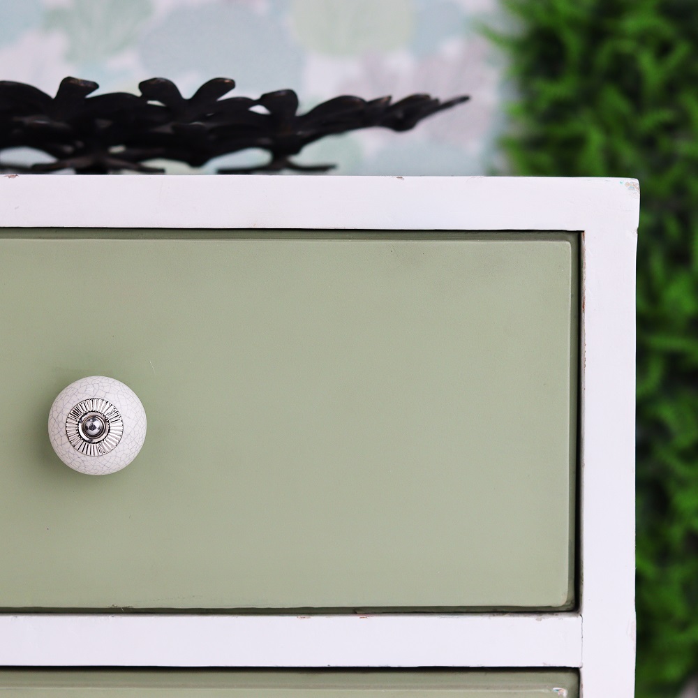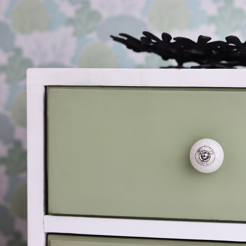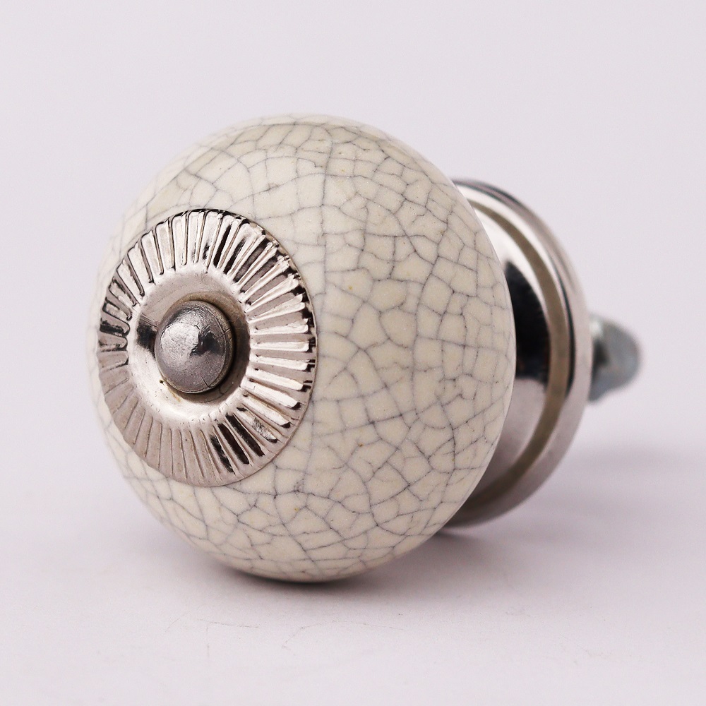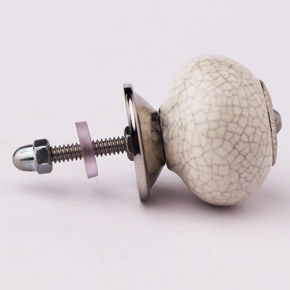 The Cream Purple Crackle Dresser Knob features a unique crackle finish that gives it an elegantly aged and textured appearance. The combination of soft cream and deep purple tones creates a striking visual contrast, making it suitable for both traditional and contemporary interiors.