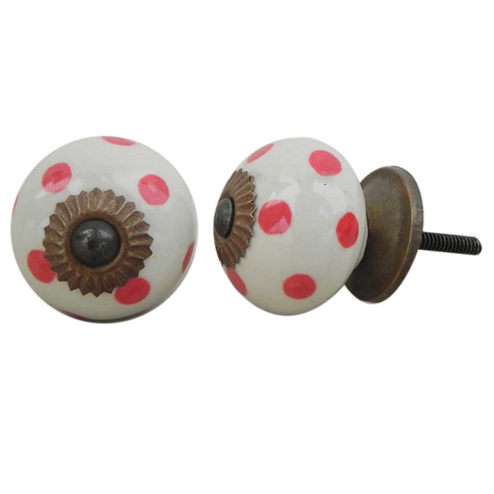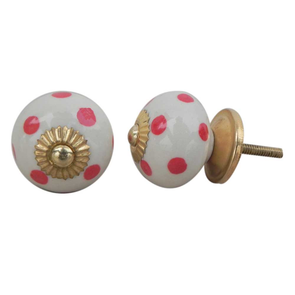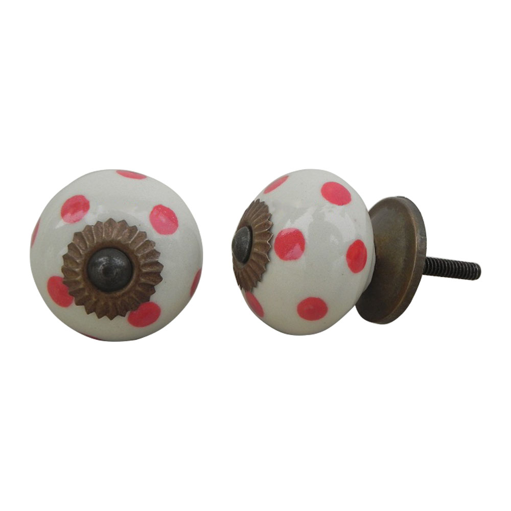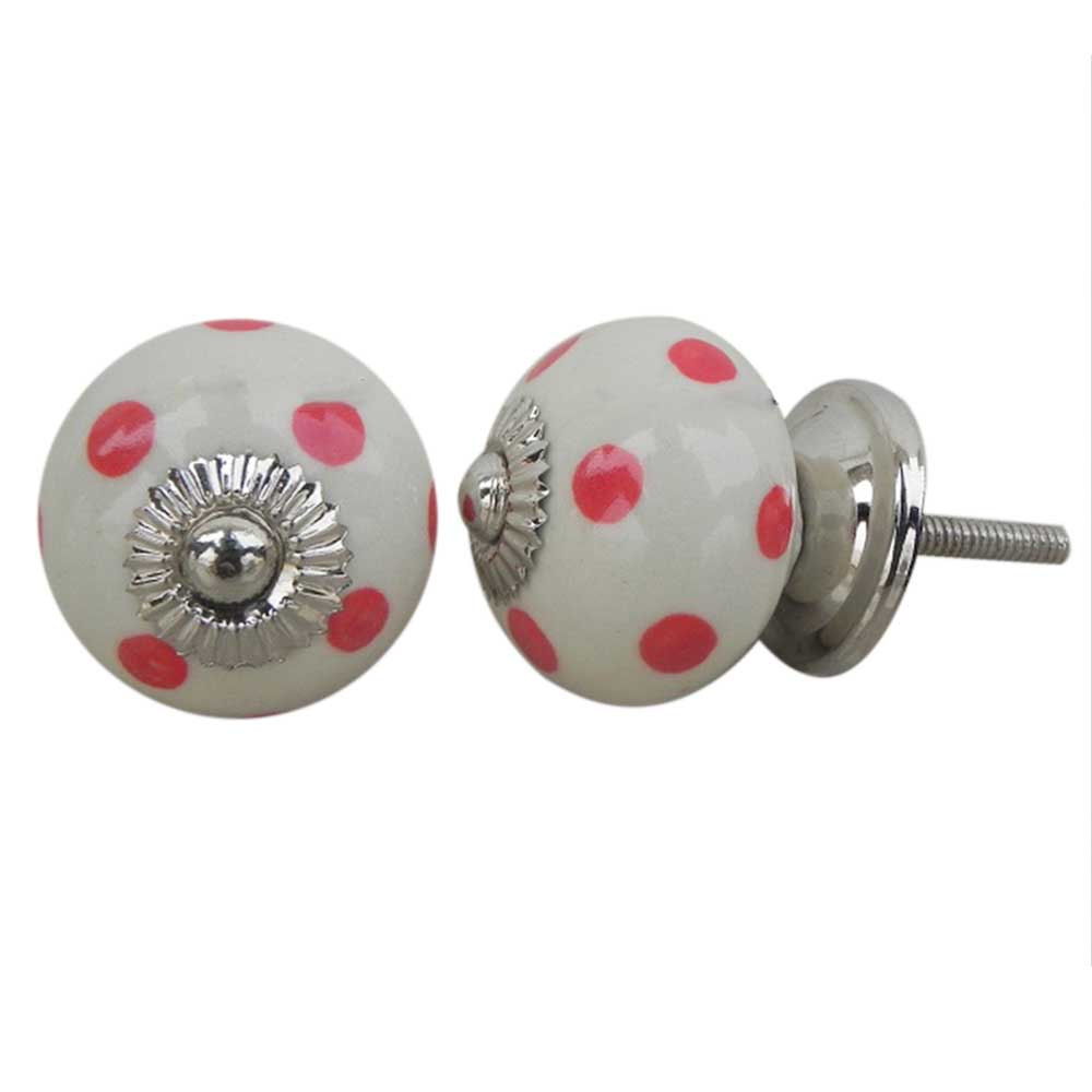 Cream Red Polka Dot Ceramic Dresser Knob