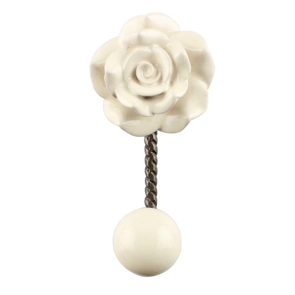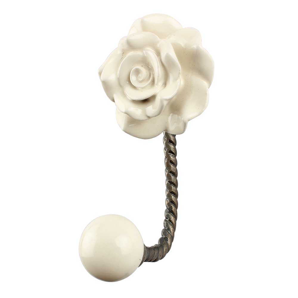 Cream Rose Flower Ceramic Wall Hook in Antique Fitting