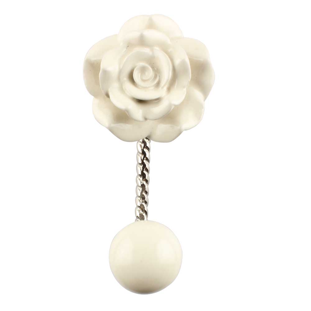 Cream Rose Flower Ceramic Wall Hook in Silver Fitting