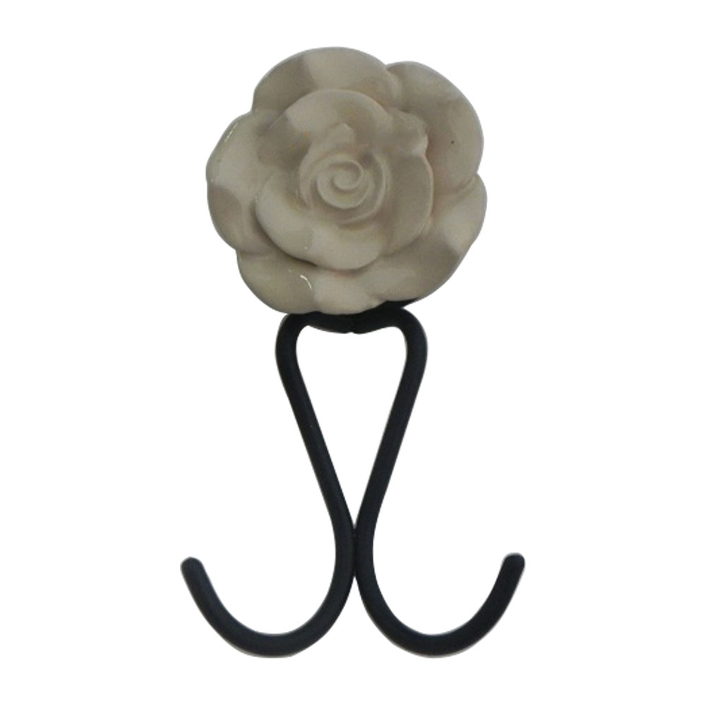 The intricate cream-colored rose design on the ceramic top gives these hooks a timeless, classic look. Paired with the durable iron base, these hooks are as functional as they are beautiful. Whether you place them in an entryway, bathroom, or bedroom, they add a touch of sophistication while offering reliable support for your belongings.