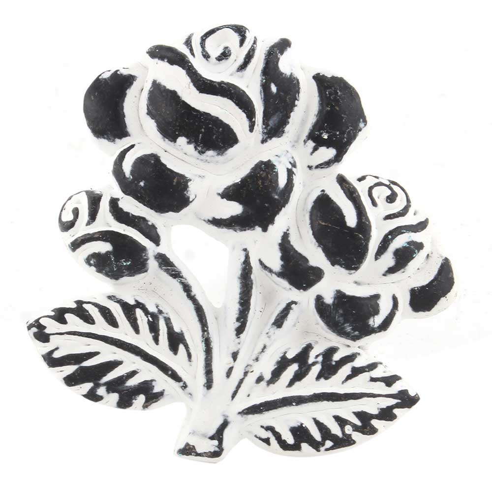The Cream Rose with Branch Distressed Iron Dresser Knob combines the beauty of a delicate cream-colored rose with intricate branch details. Its soft, neutral tone and vintage-inspired distressed finish make it a charming and versatile piece for adding a touch of rustic elegance to your furniture.