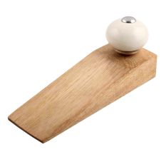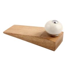 Handmade Ceramic and Wooden Door Stopper.Wooden Door Stopper with a Ceramic Knob to Carry it Easily. This Wooden Door Stopper has Glue Dots under it to Ensure that it does not Slip. It is Handmade by the Craftsmen of India and this Innovative Door Stopper won't Disappoint You.