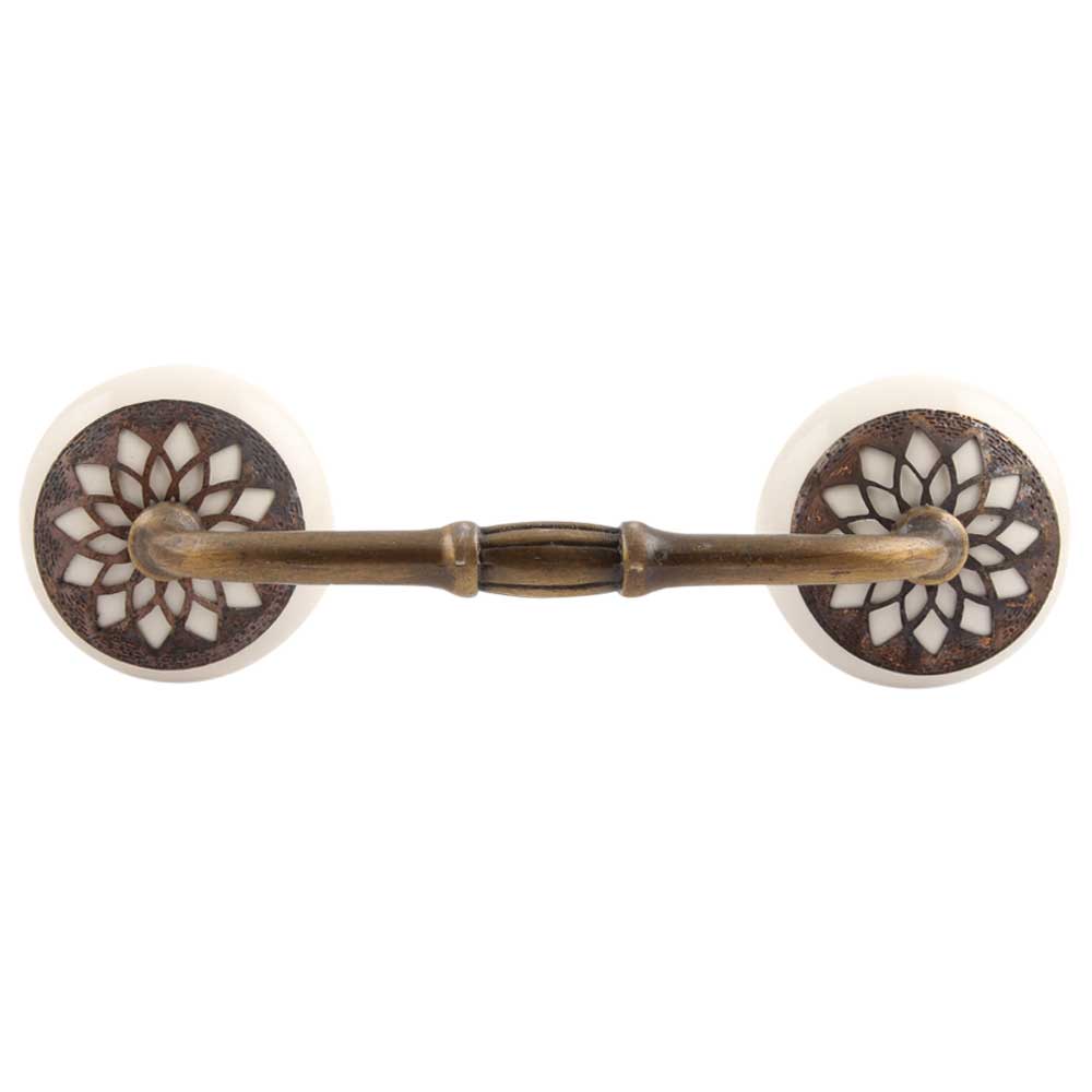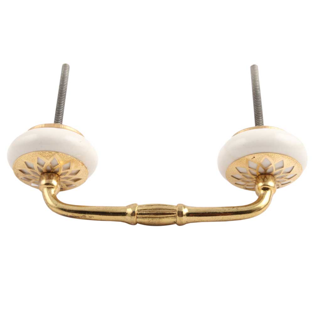 Cream Strewn Flat Ceramic-03 Bridge Handle. Ideal for Drawer, Dresser, Cabinet, Wardrobe, Cupboard and Almirah.