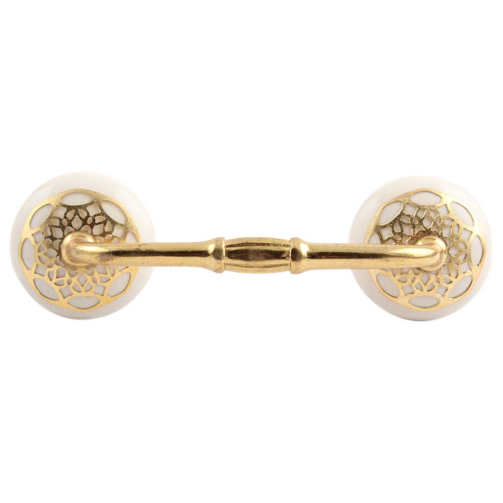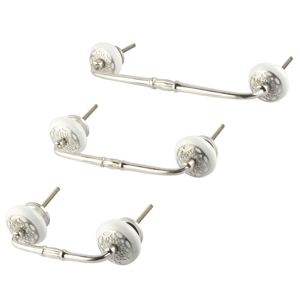 Cream Strewn Flat Ceramic-04 Bridge Handle. Ideal for Drawer, Dresser, Cabinet, Wardrobe, Cupboard and Almirah.