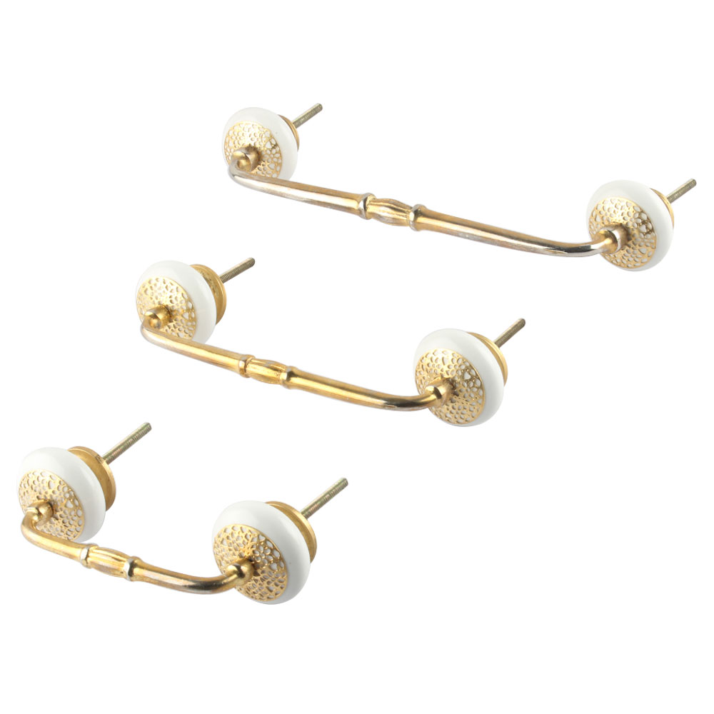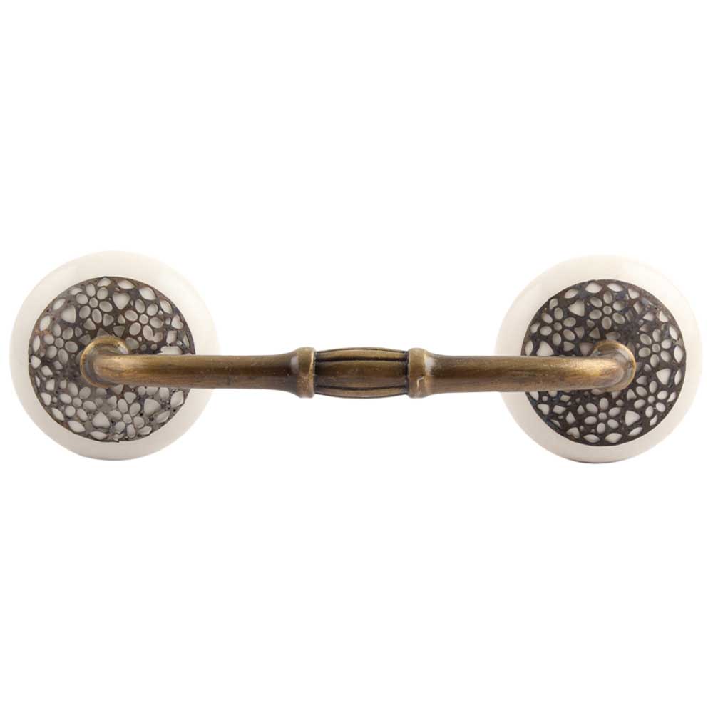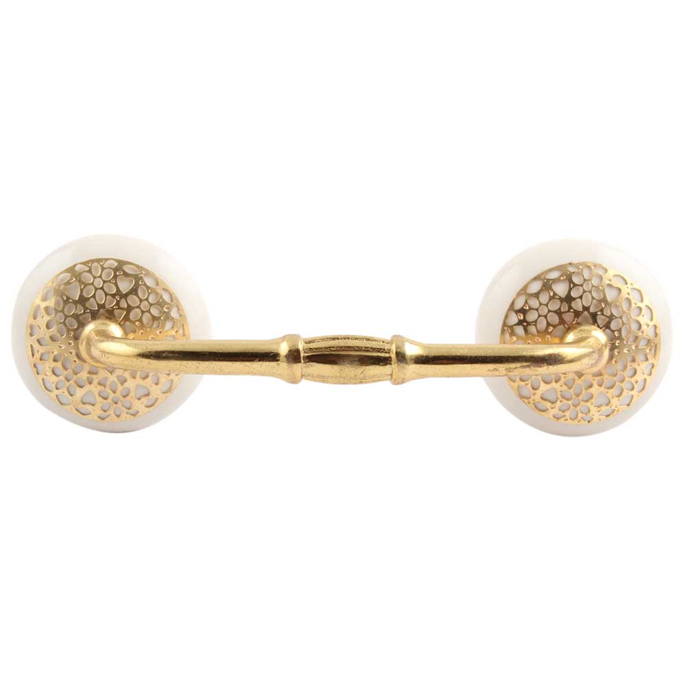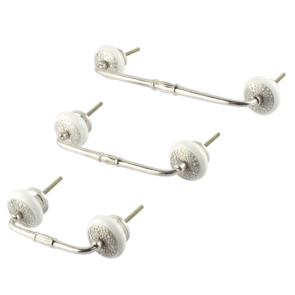 Cream Strewn Flat Knob-06 Bridge Handle. Ideal for Drawer, Dresser, Cabinet, Wardrobe, Cupboard and Almirah.