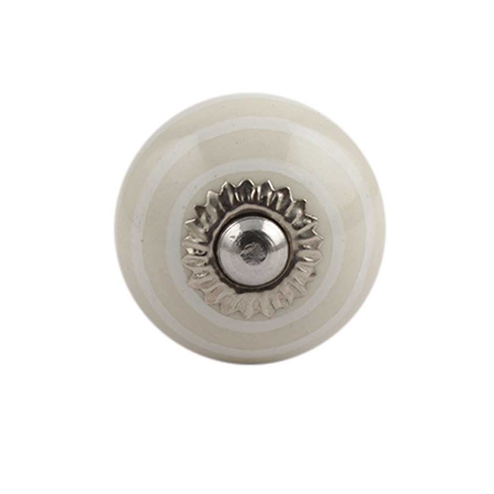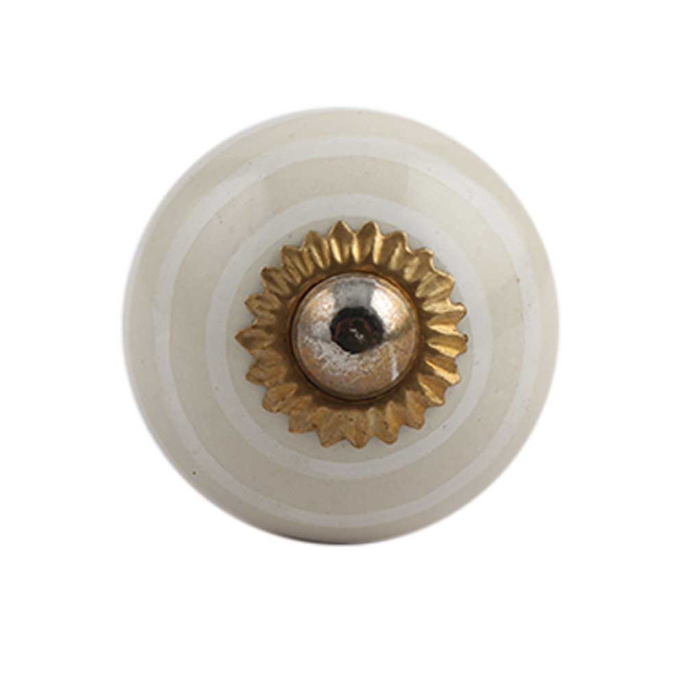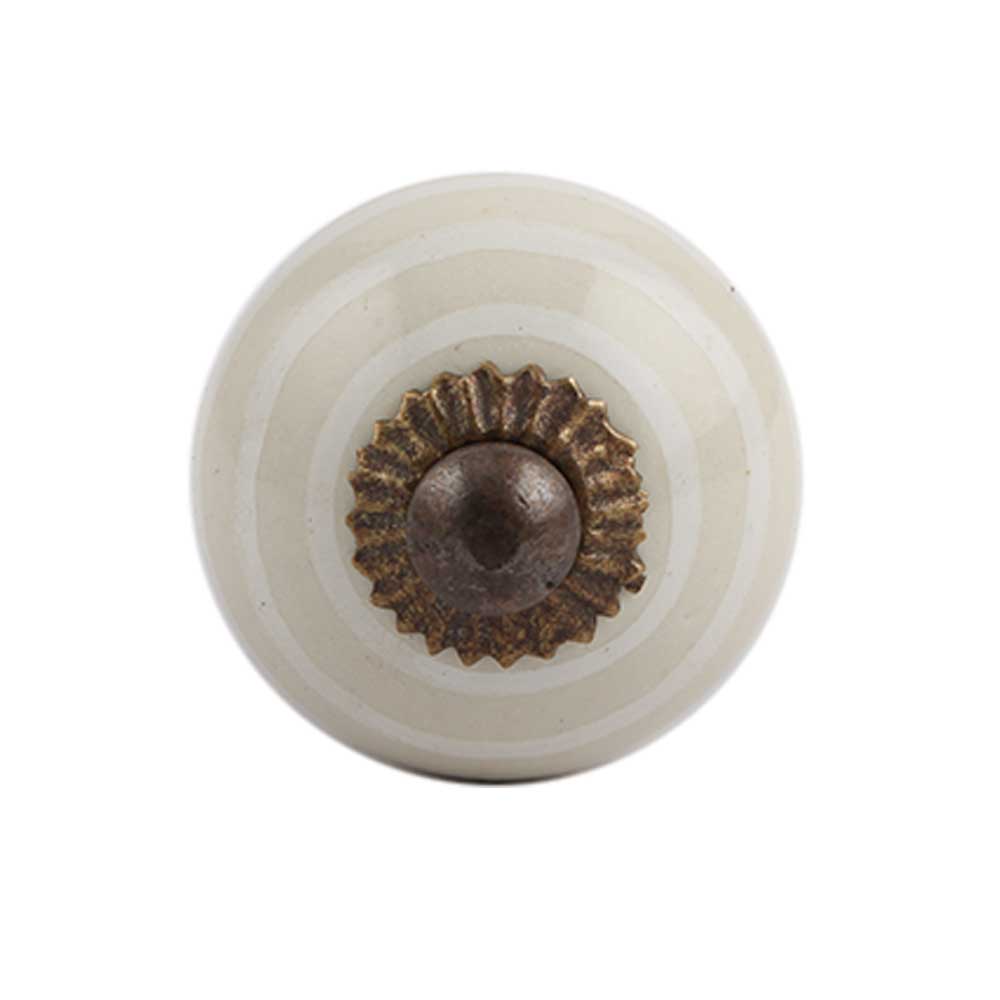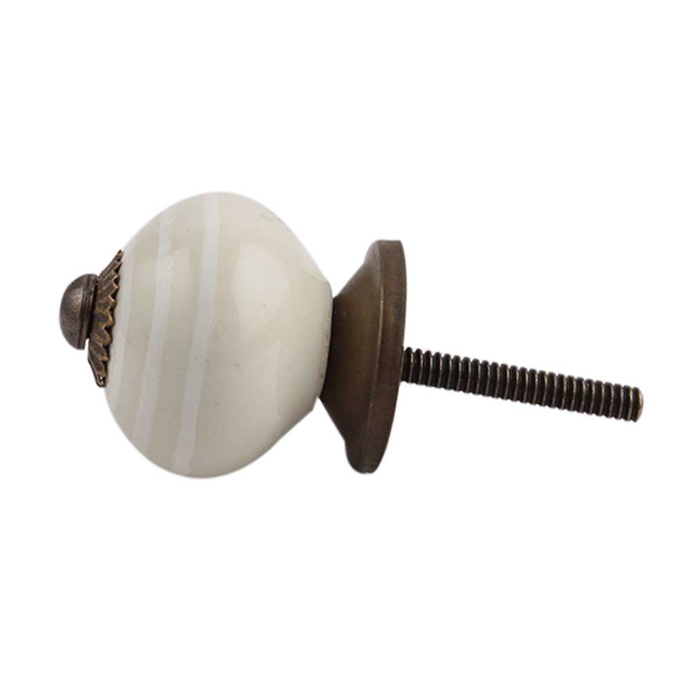 Cream Striped Small Ceramic Cabinet Knob