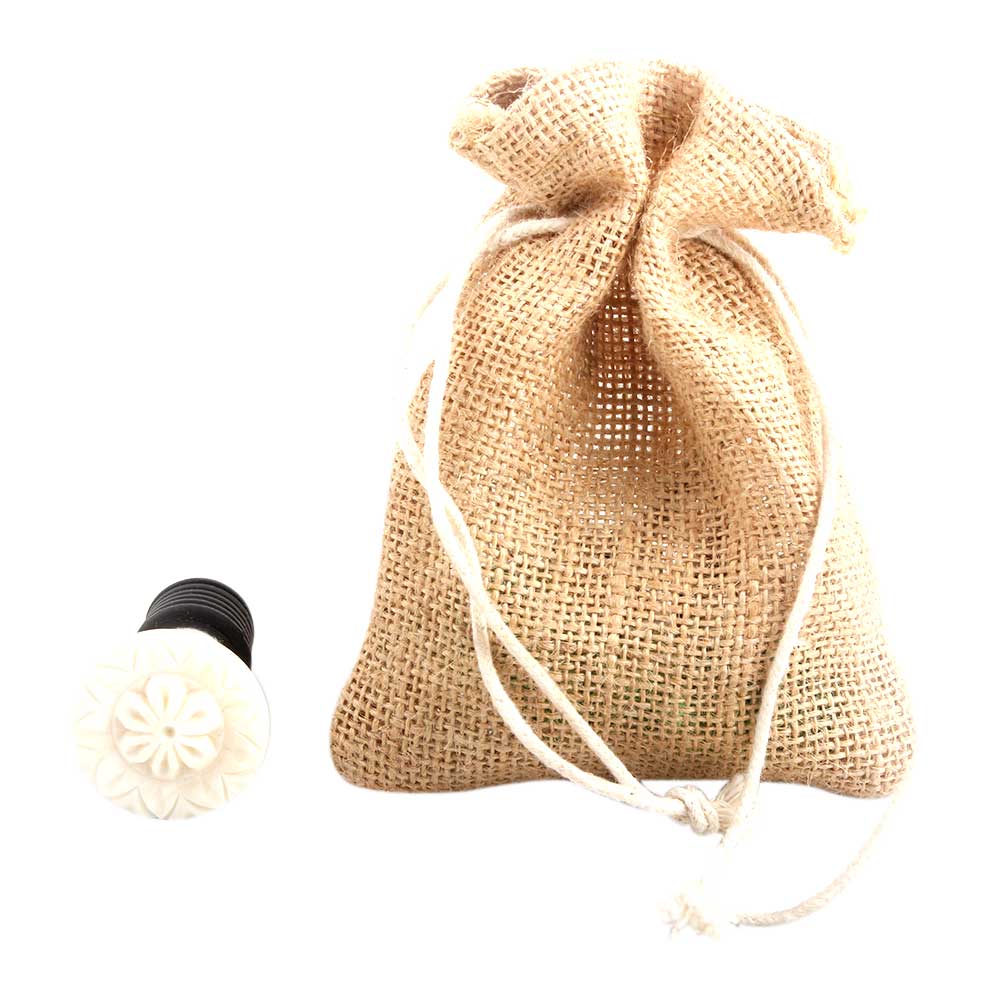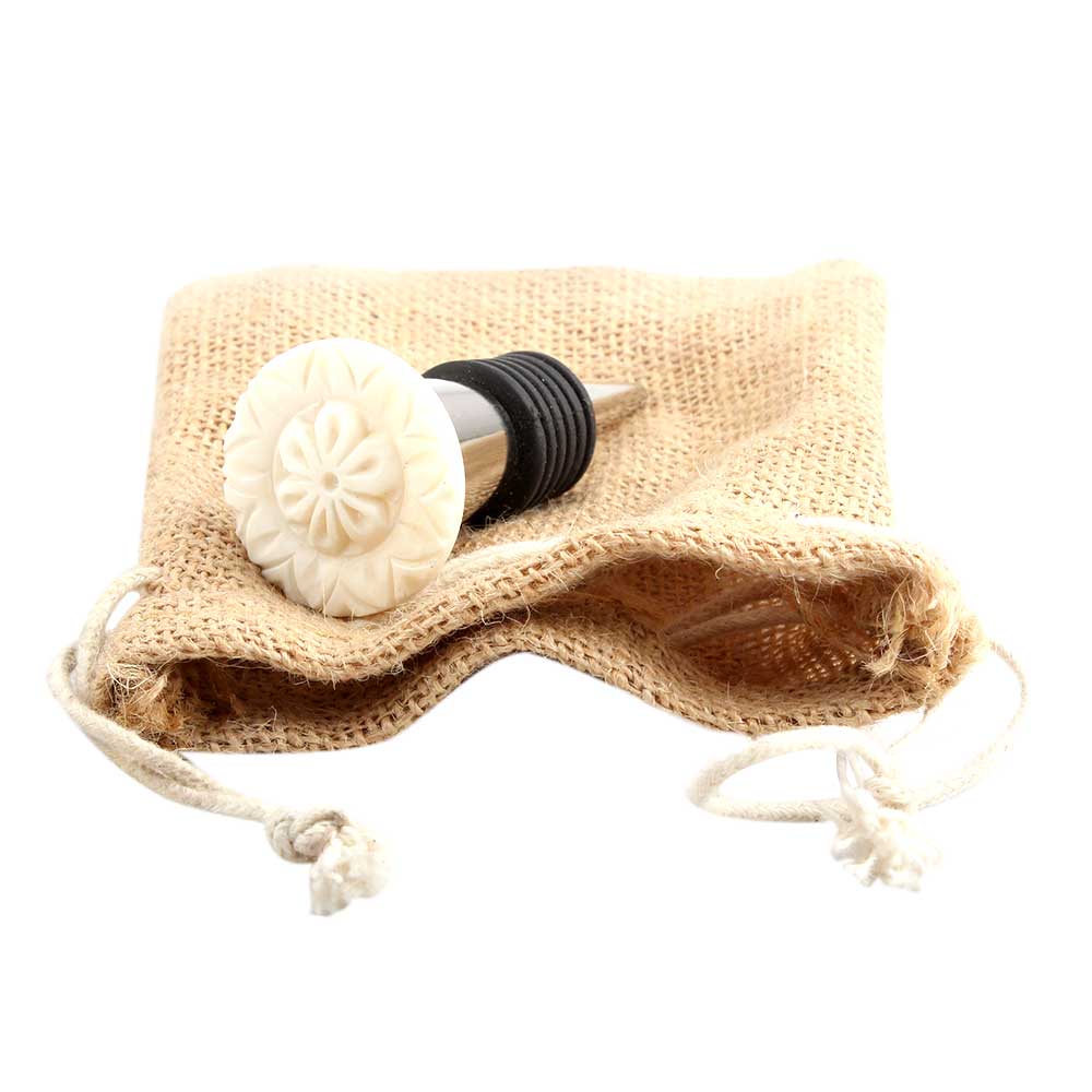 Cream Tiny Flower Bone Wine Stopper.zinc alloy wine bottle stopper with attractive Jute Bag Packaging.