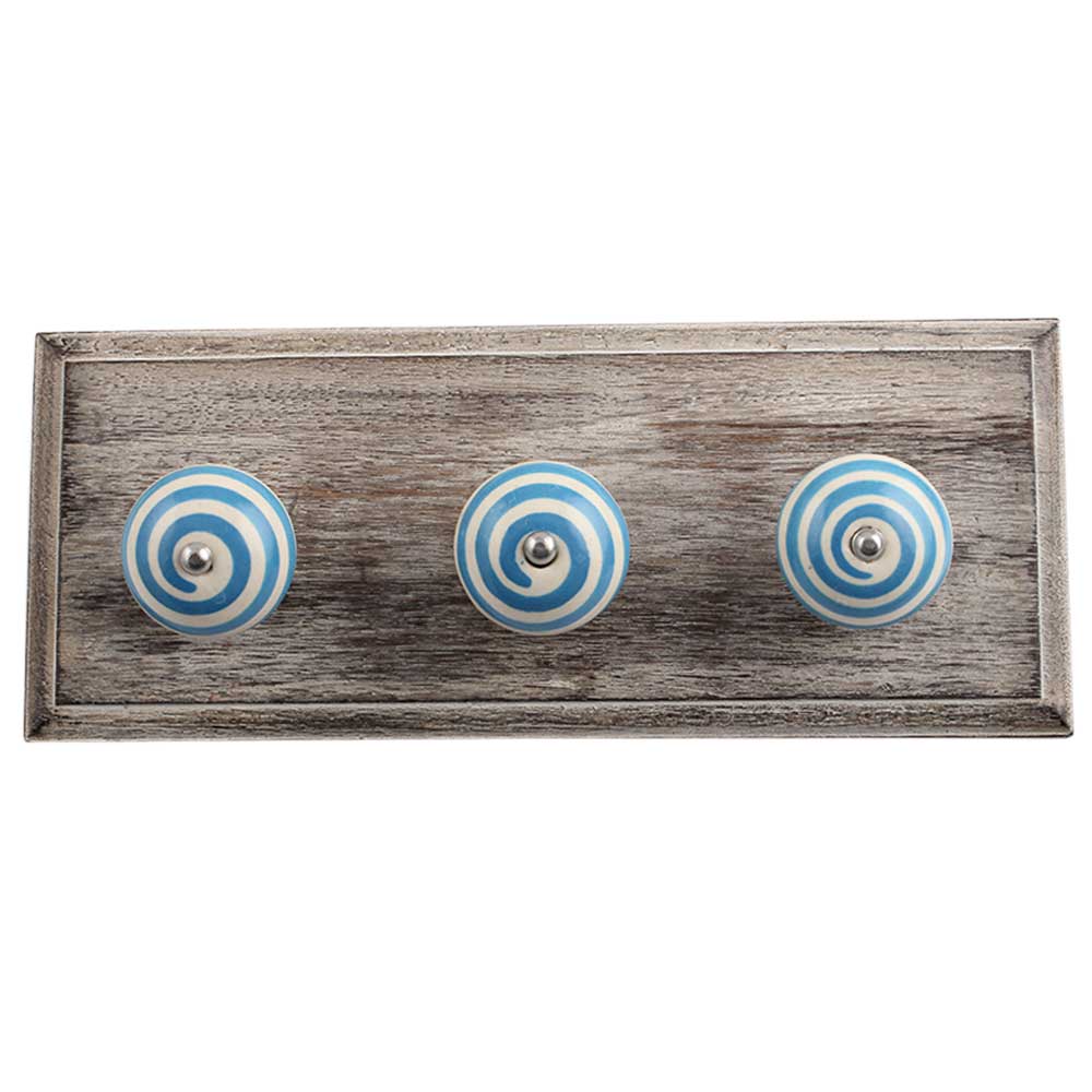 Cream Turquoise Strip Wooden Hooks. A Perfect Complement to the Soft Tone of the Wood are these White Traditional Hat Coat Hook Made of Genuine Porcelain and Brass. It can be use to Hang Jewellery, Leashes, Towels, Scarves, Light Weight Sweaters, Caps Etc.