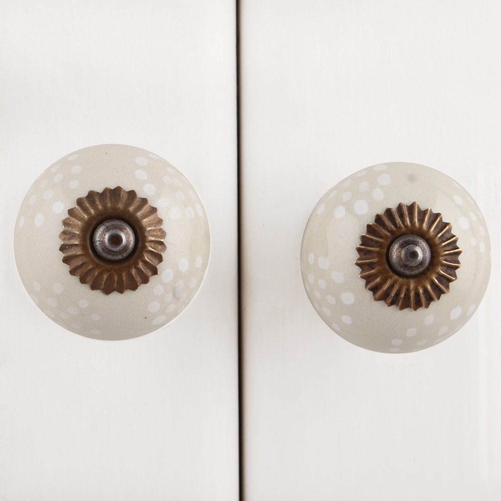 Cream White Dotted Knob. Ideal for kitchen cabinets, kitchen drawers, dining room, bed room, chest drawers, dressing tables, almirah